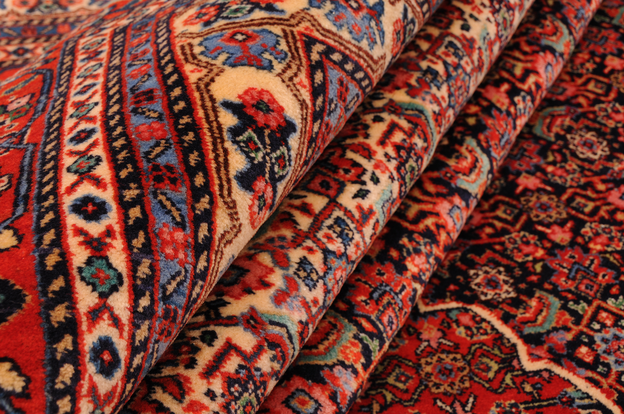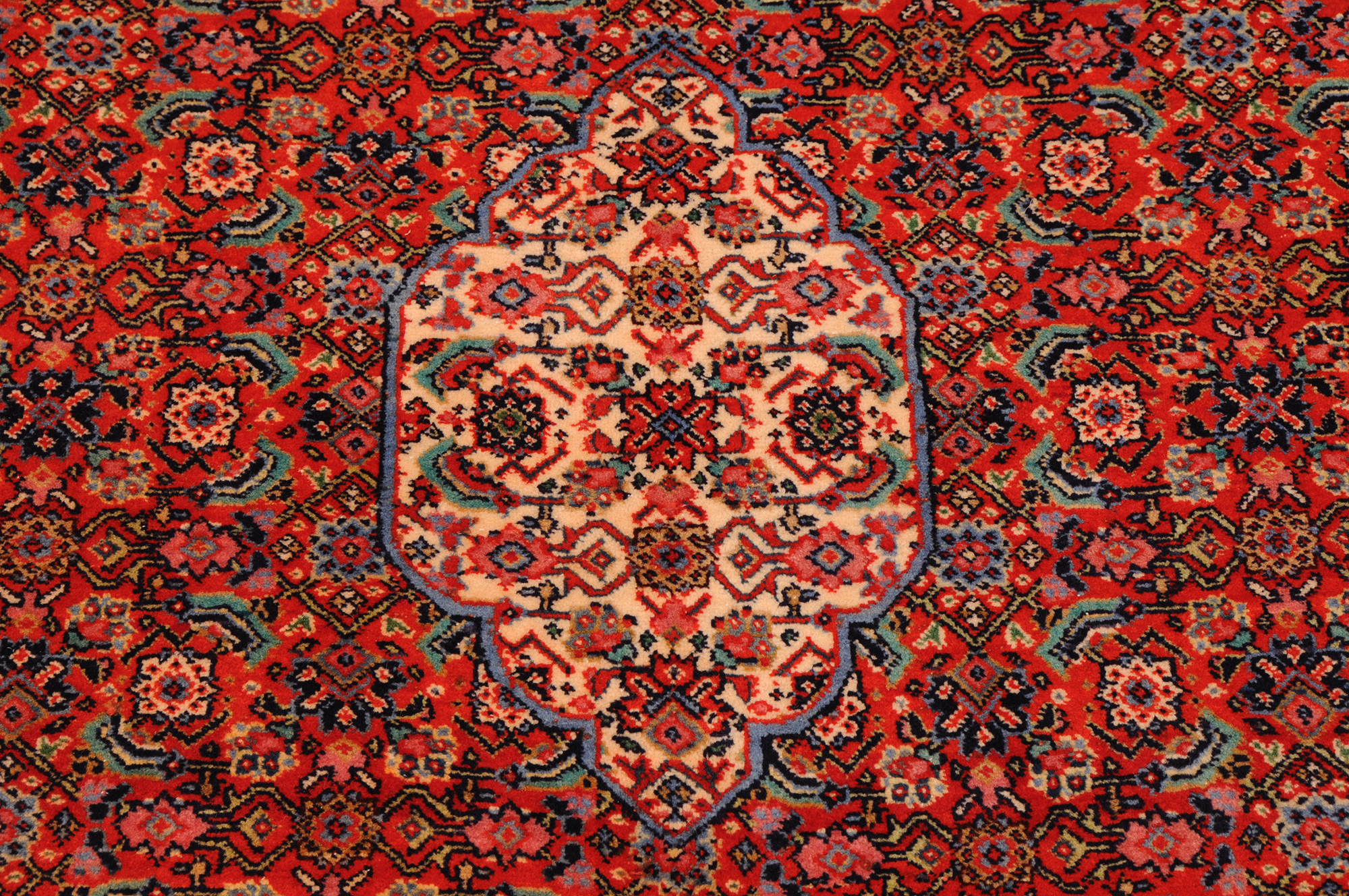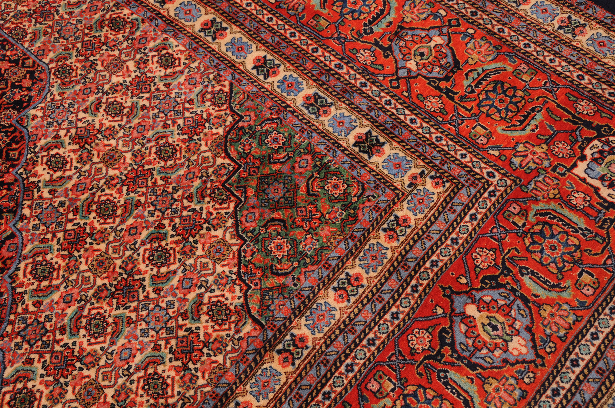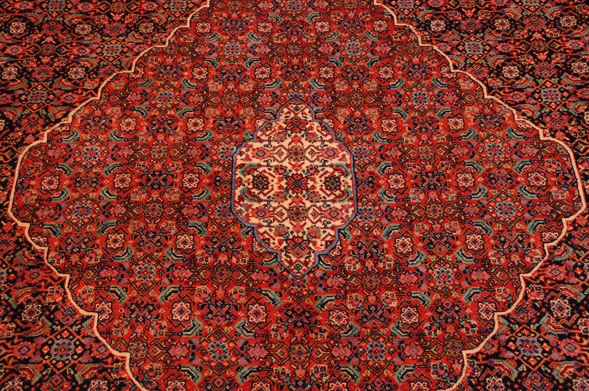 This Persian Rug is Hand Knotted with 100% Wool Pile and Cotton Foundation. This Rug has a HERATI Design and its Main colors are Navy, Red, and Beige.