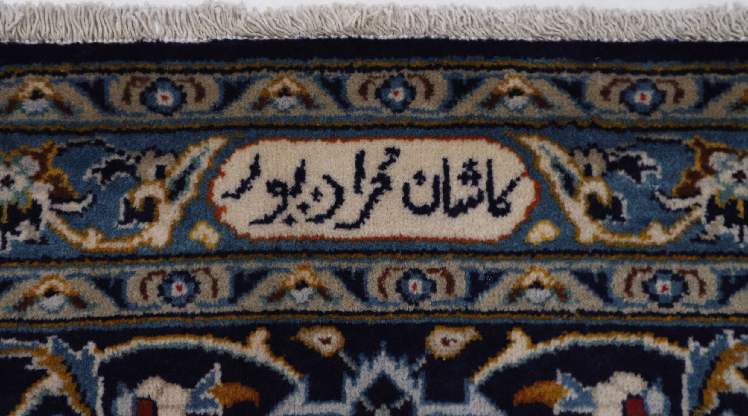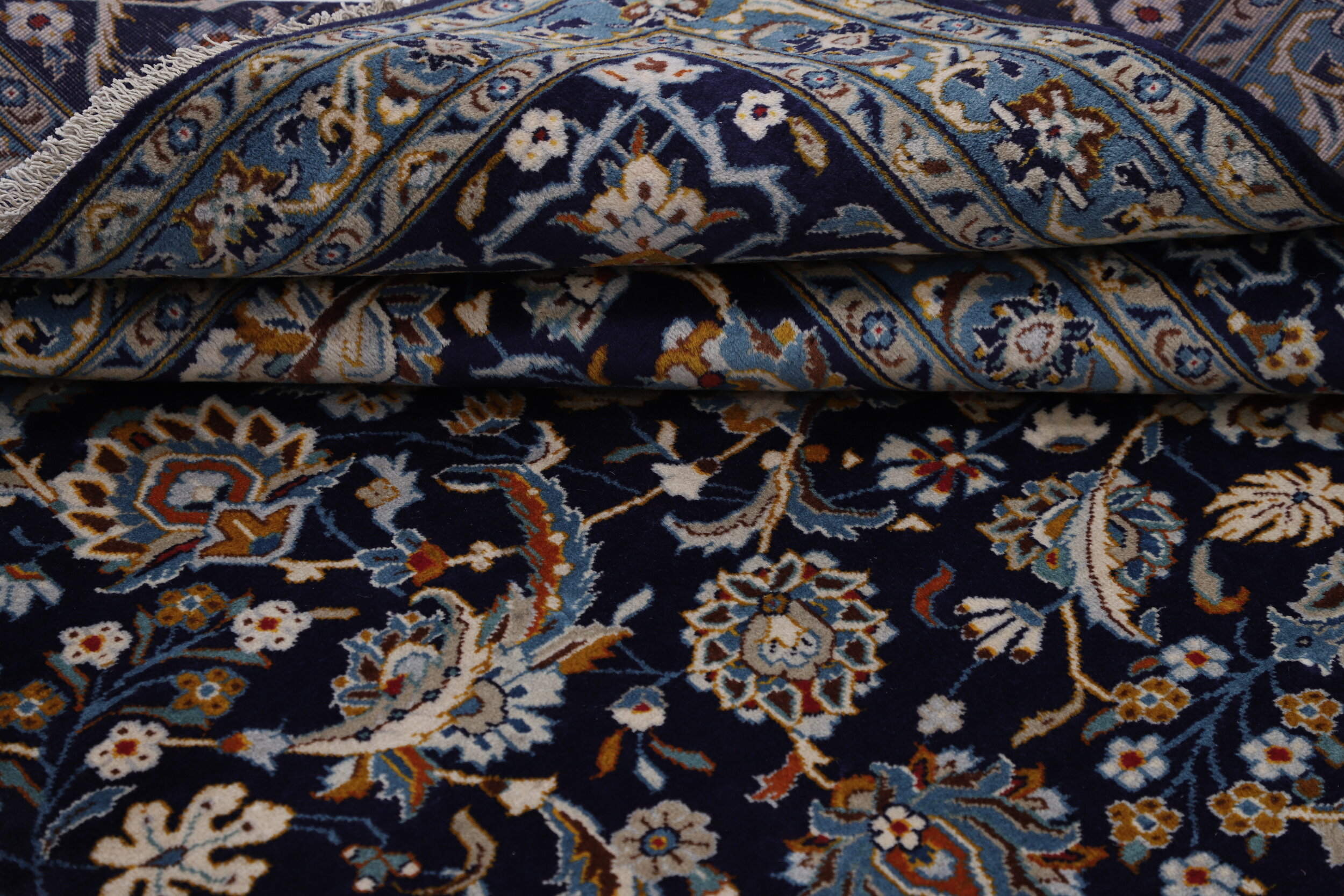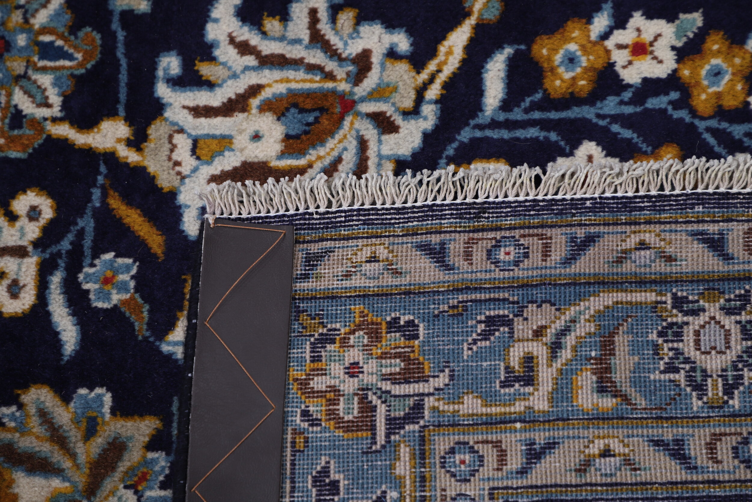 This Hand Knotted Kashan rug measures 10’2″ x 13’5″ and features an aged (30-40 years) Blue and beige floral design. With an approximate knot count of 169 KPSI, this rug is made using 100% wool and cotton materials, and has a high pile height ranging from 1/2″ to 5’8″. This rug is perfect for adding warmth and texture to any living space or bedroom.