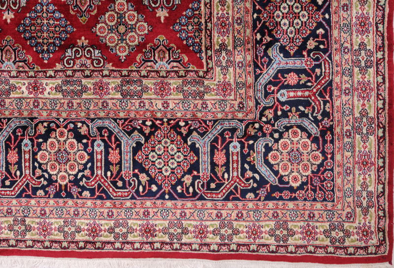 This Persian Rug is Hand Knotted with 100% Wool Pile and Cotton Foundation. This Rug has a Herati Design and its Main colors are Red, Beige, Blue.