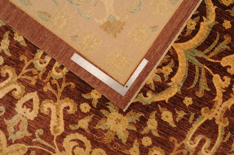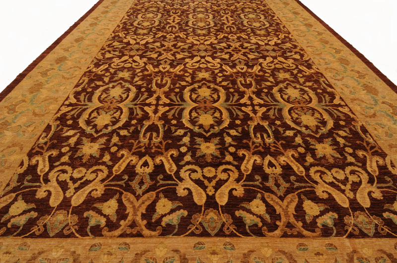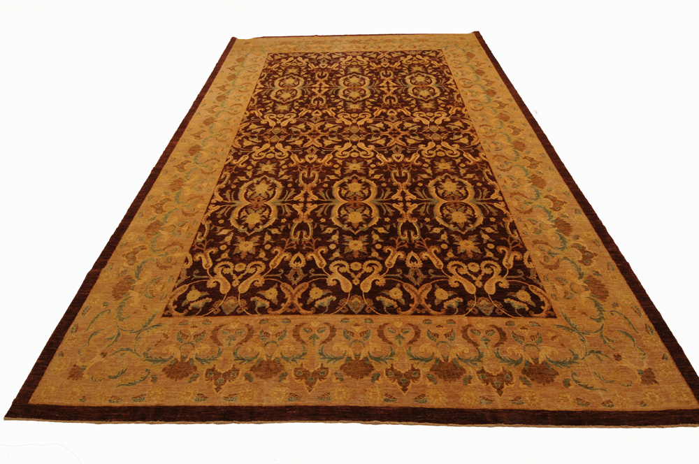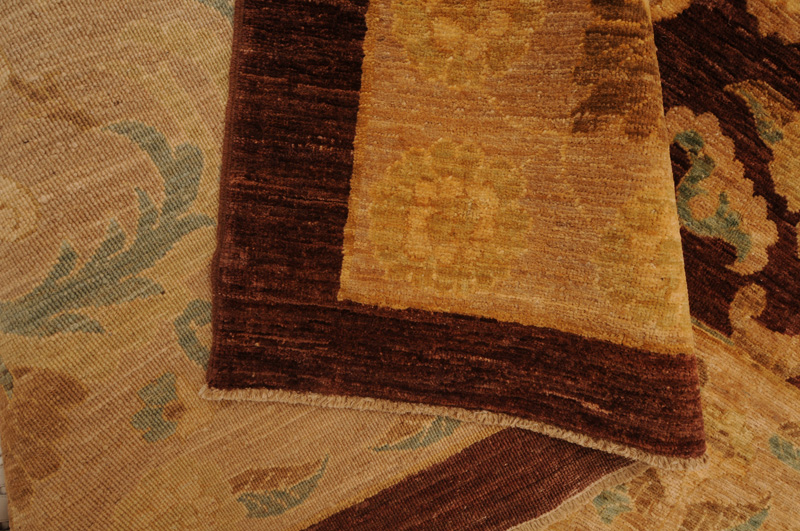 This Oriental Rug is Hand Knotted with 100% Wool Pile and Cotton Foundation. This Rug has a Floral Design and its Main colors are Brown, Beige, and Blue.