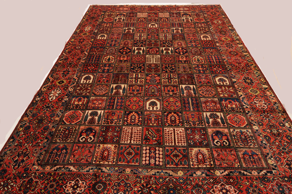 This Persian Rug is Hand Knotted with 100% Wool Pile and Cotton Foundation. This Rug has a Garden design Design and its Main colors are Brown, Green, Beige.