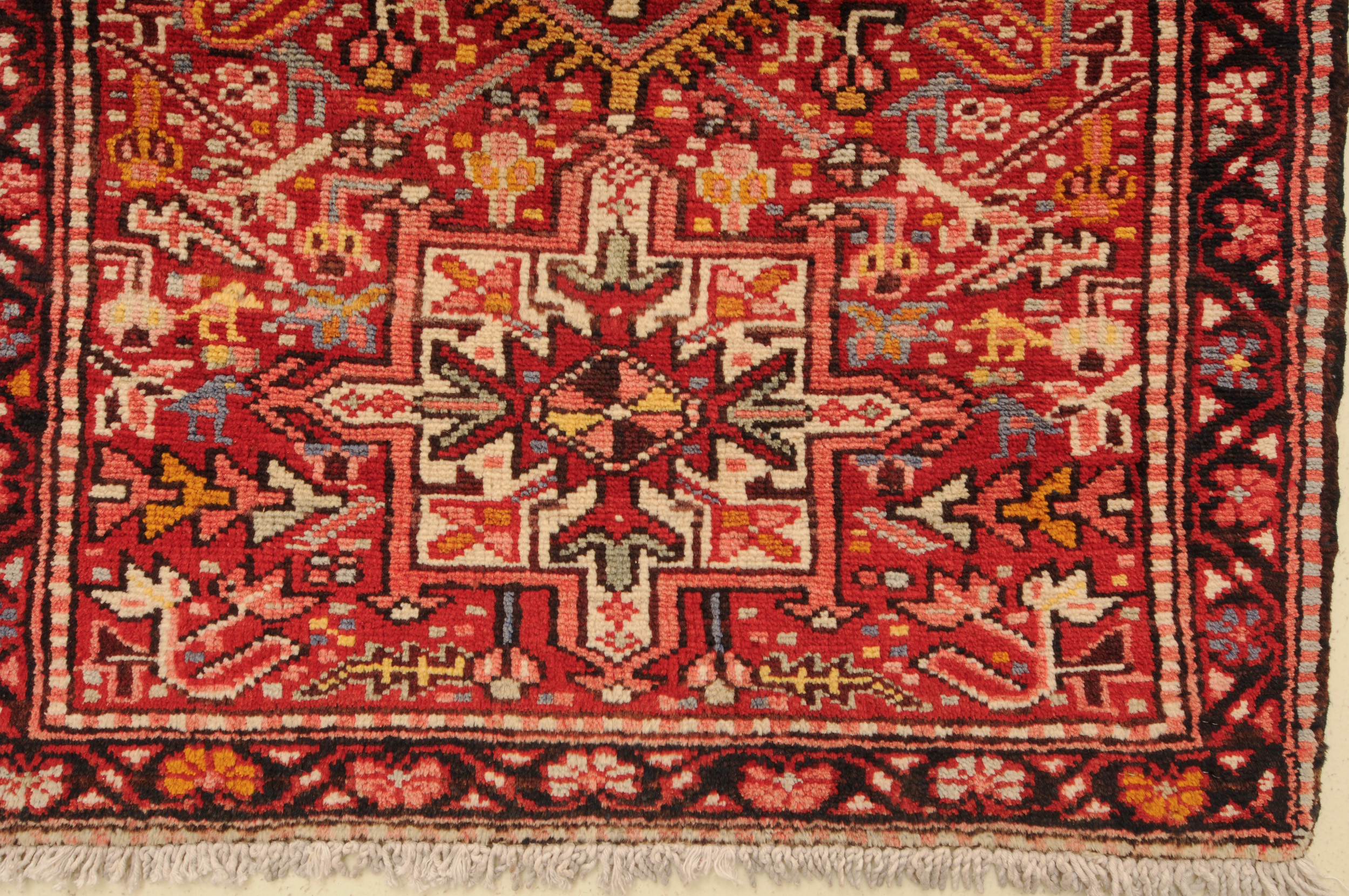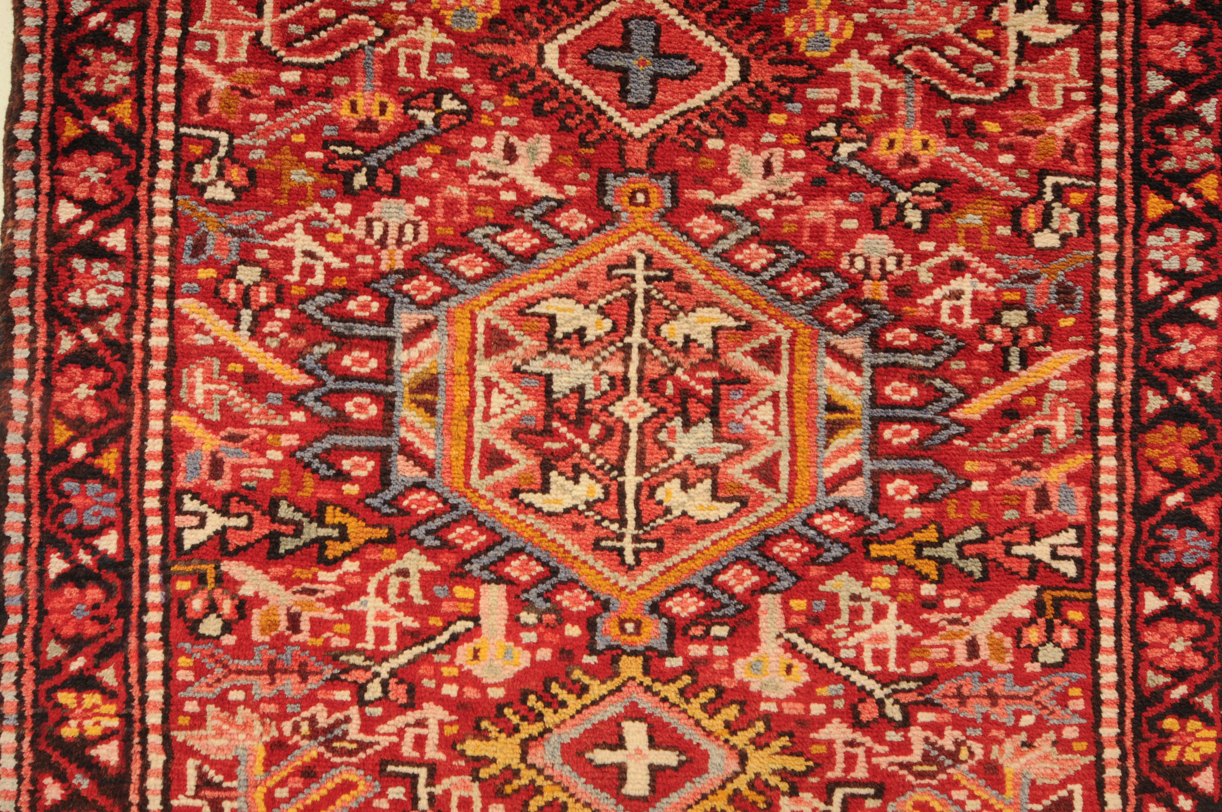 This Persian Rug is Hand Knotted with 100% Wool Pile and Cotton Foundation. This rug has a Allover Design and its Main colors are Red, Beige, Blue.