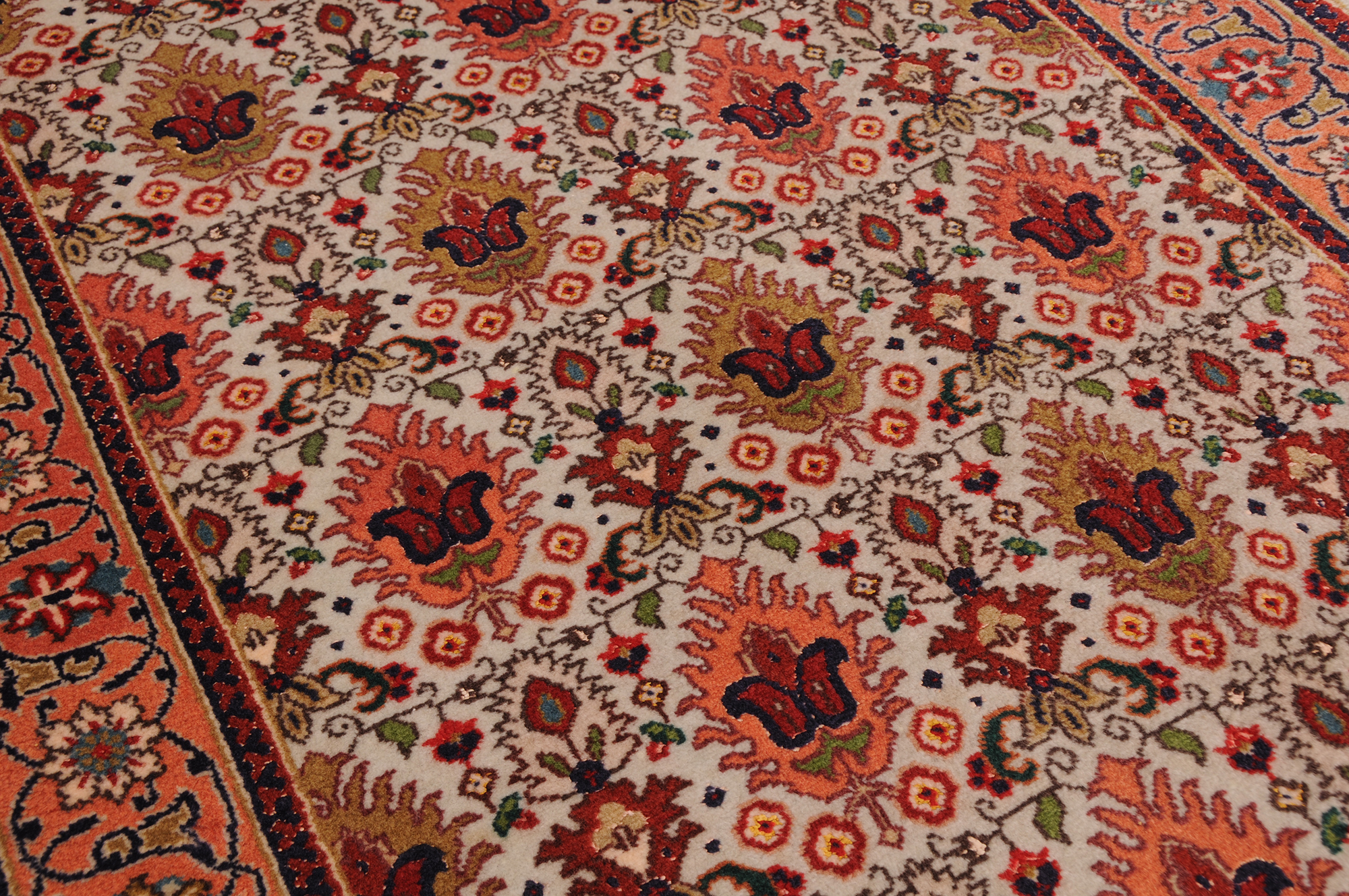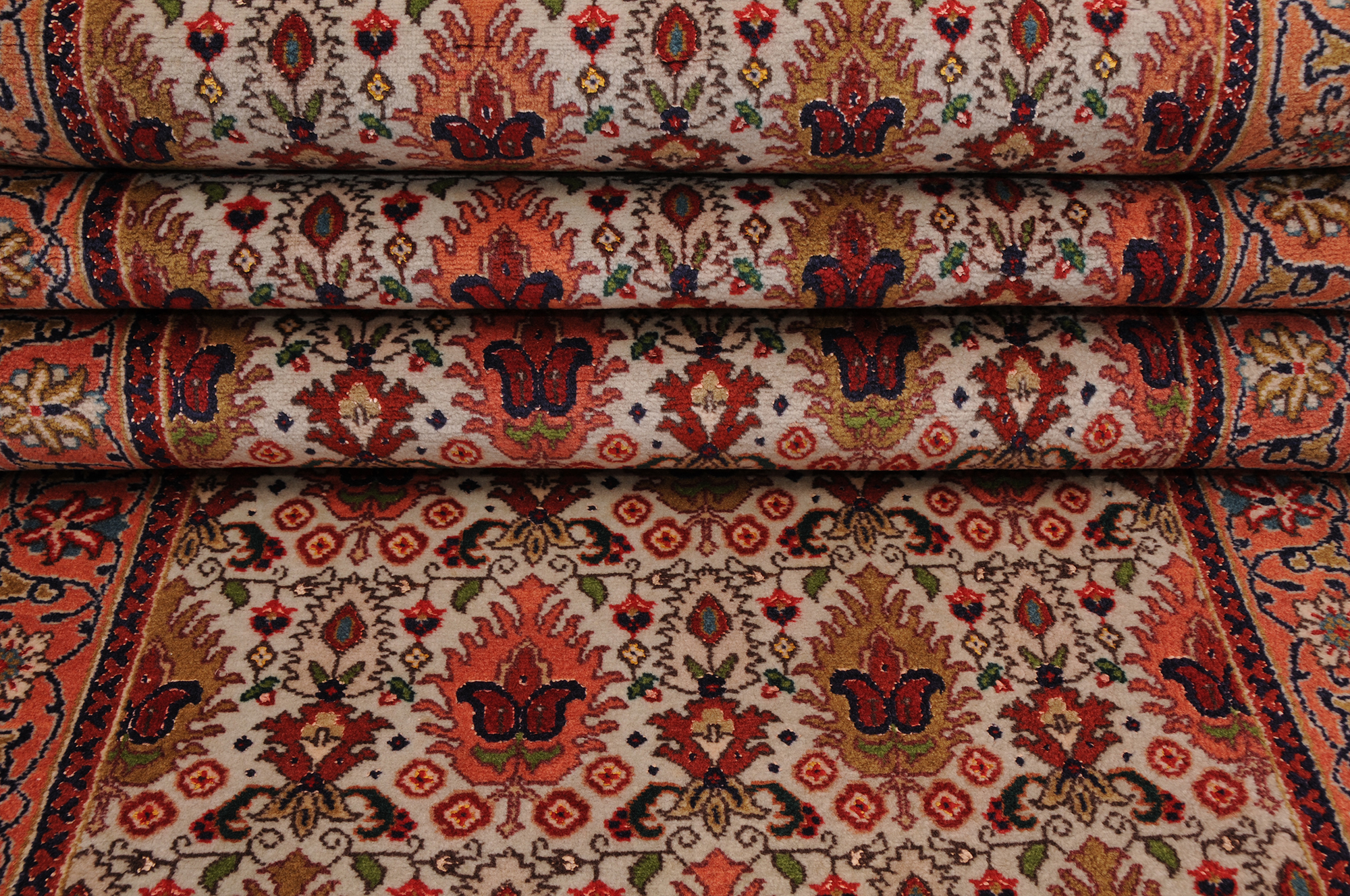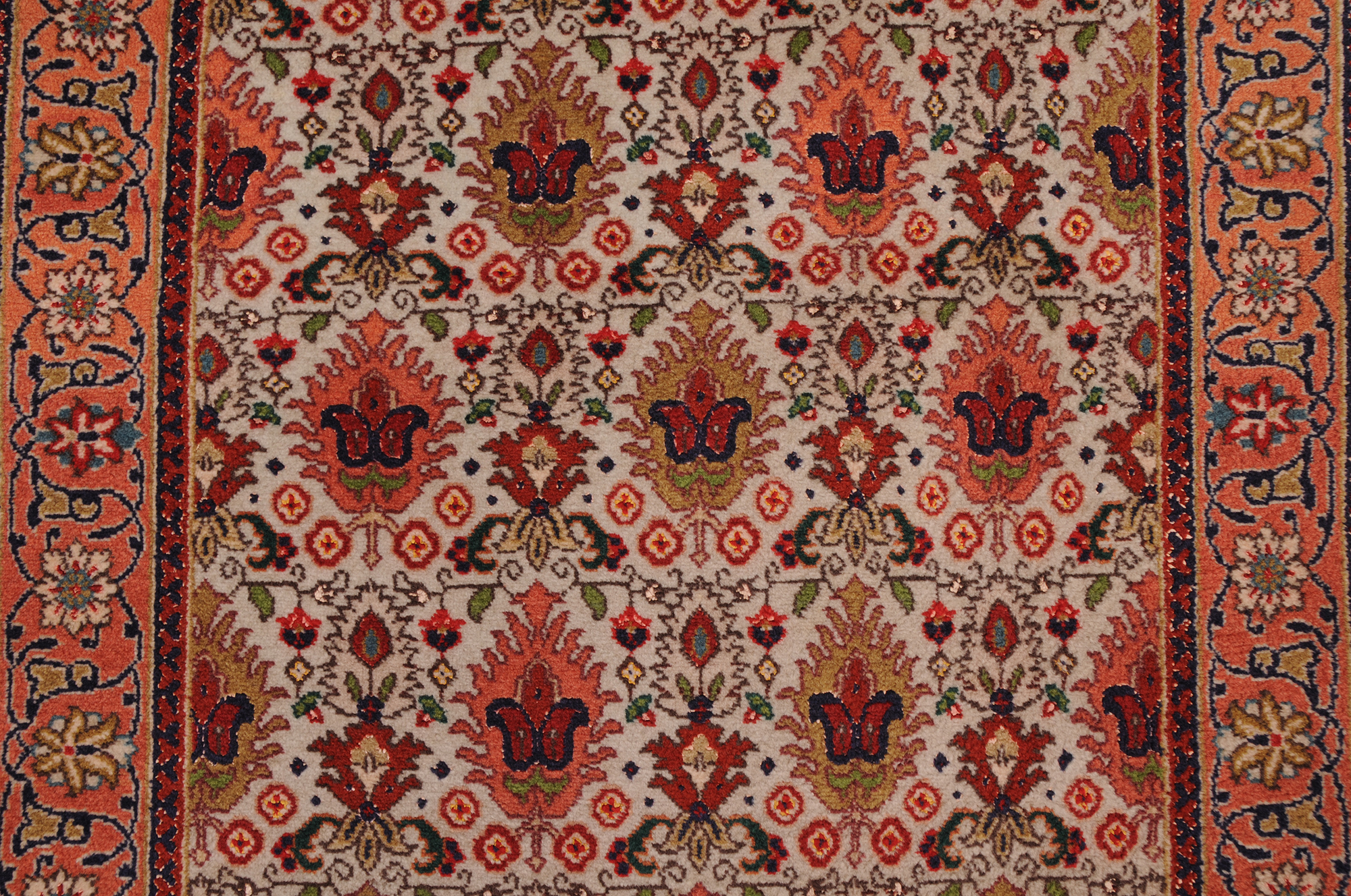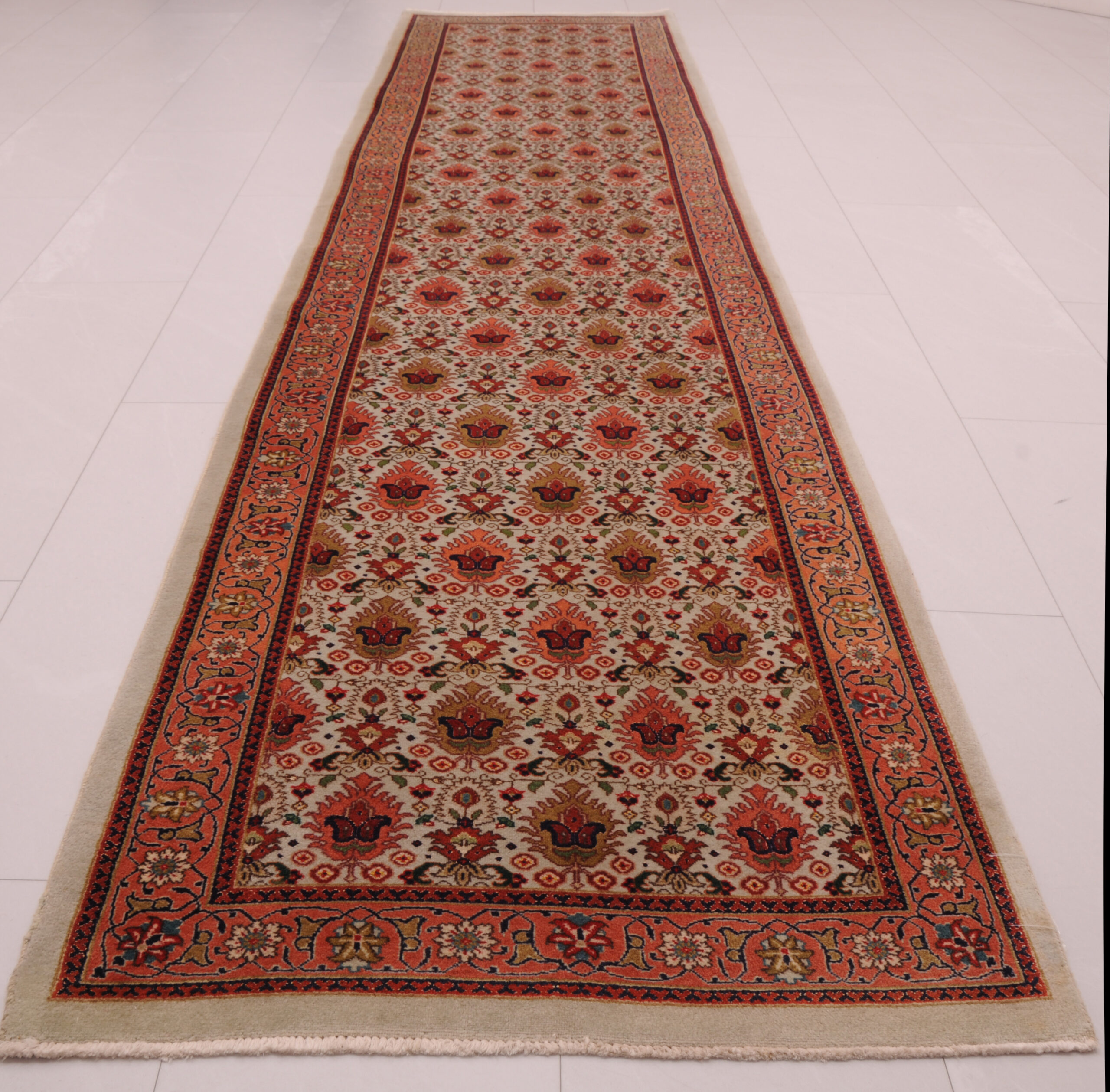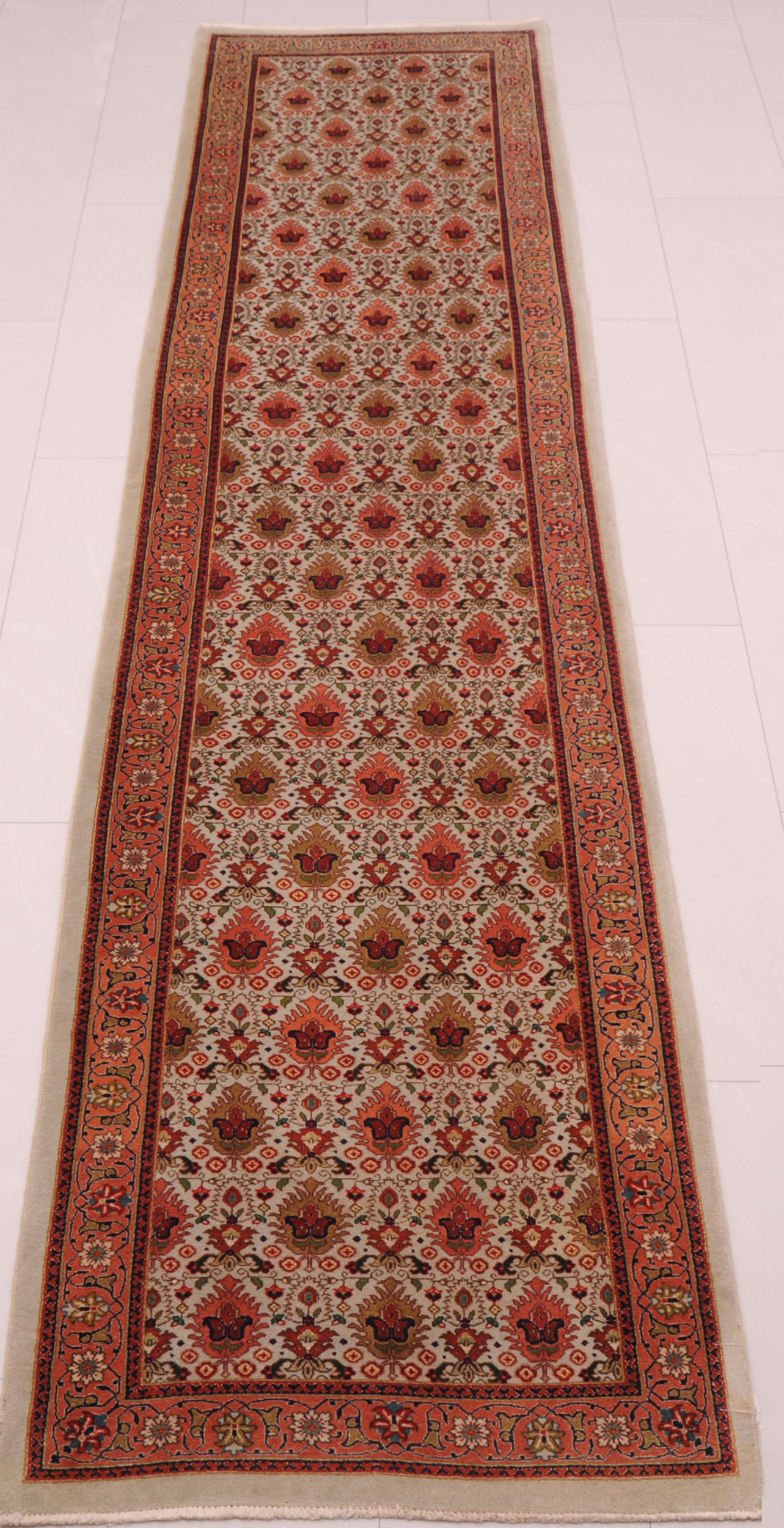 Purchasing a Tabriz rug will not only make a fine addition to your home but also be a sound investment. Handknotted Silk and wool pile at 324 KPSI on a cotton foundation, this 2’9″x 12’8″ Persian Tabriz rug with a medium pile thickness of 1/3″-3/8″ will surely provide you with many years of enjoyment.