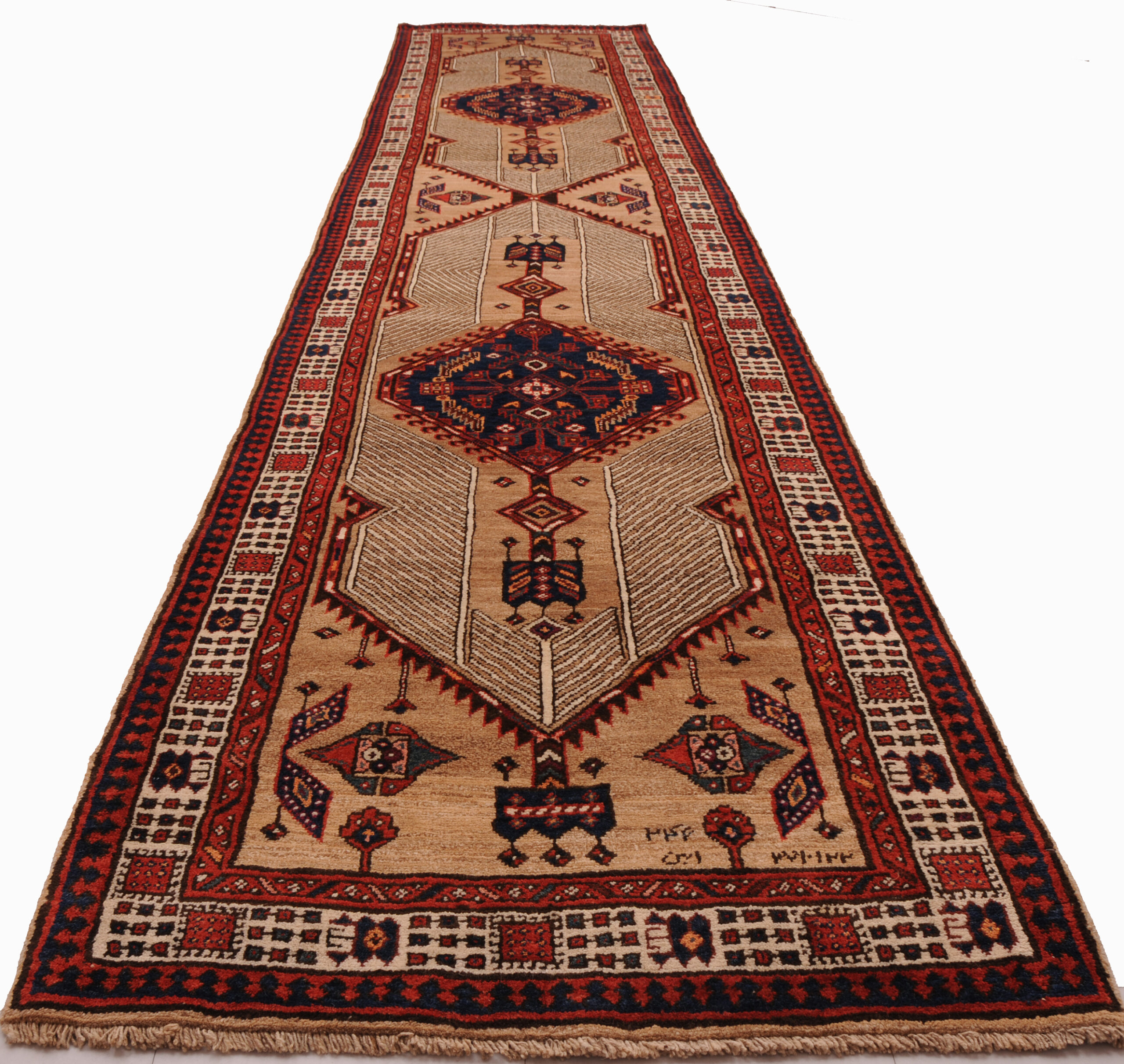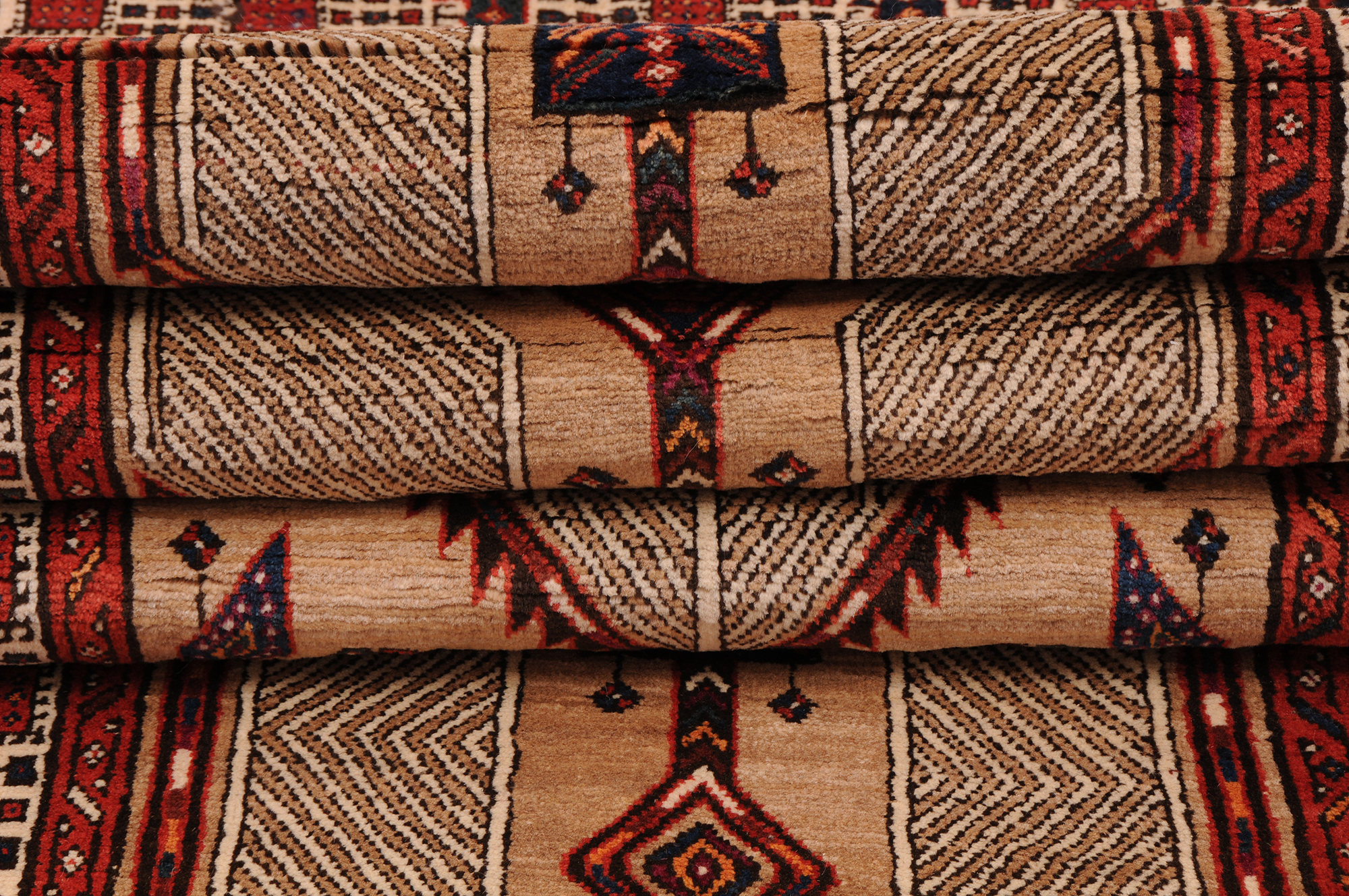 This SARAB rug has a Beige field with a Beige border, featuring a Allover design. Made with 100% Wool with Cotton foundation. It has knot density of 156 kpsi.