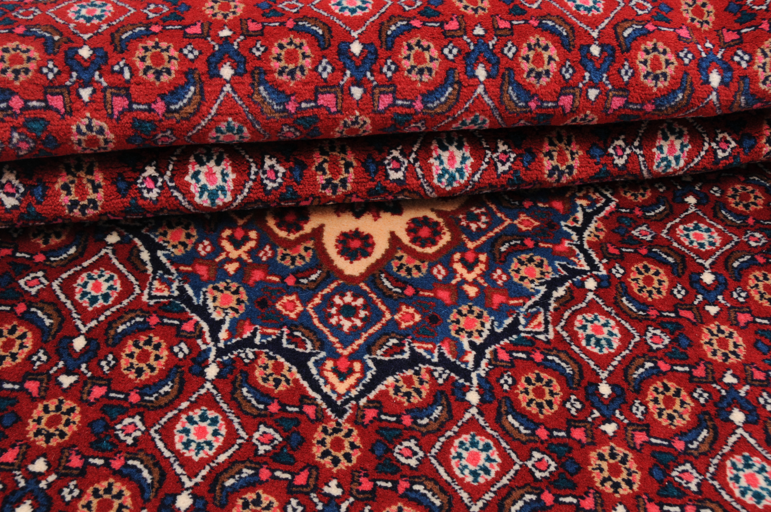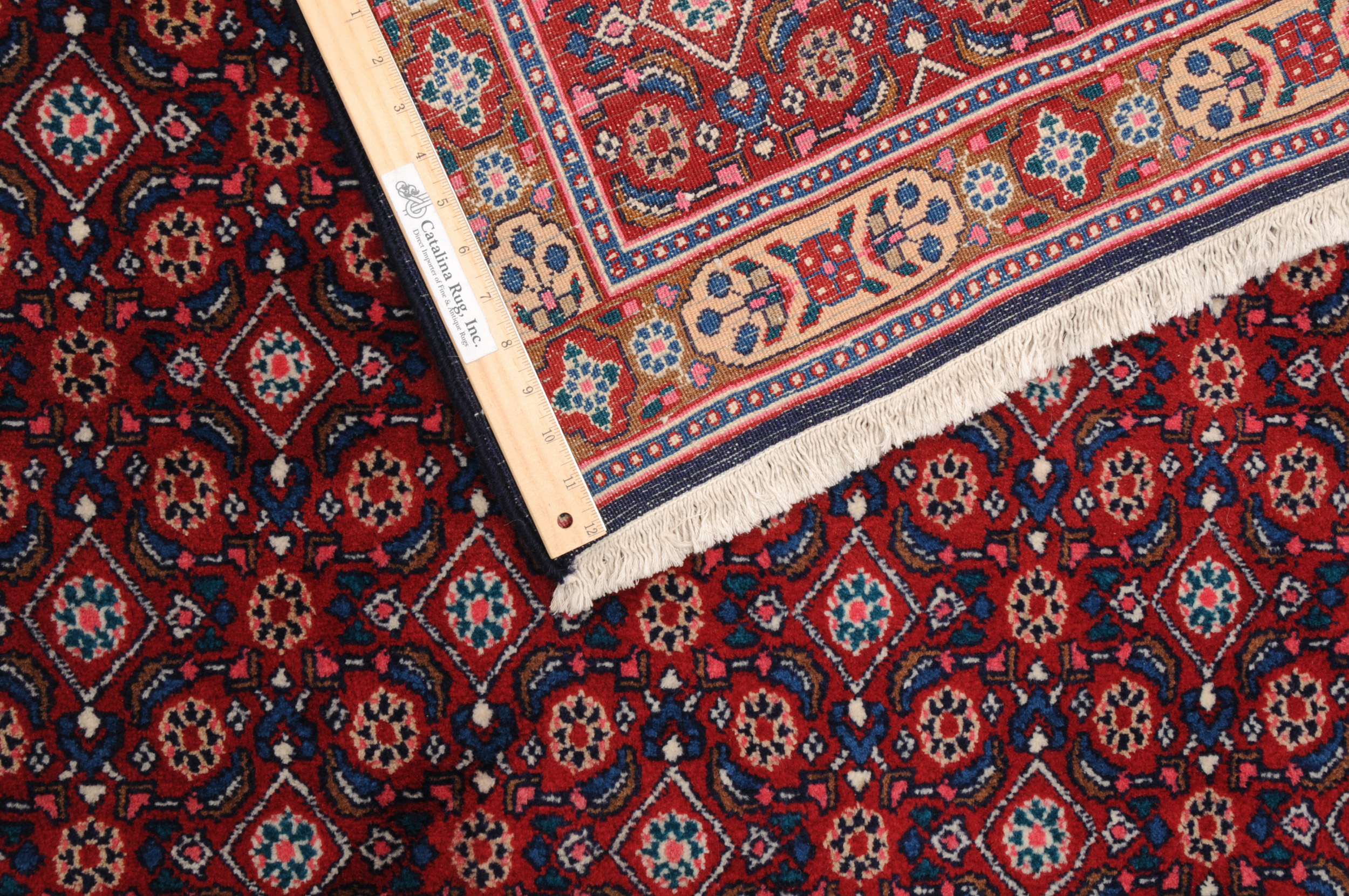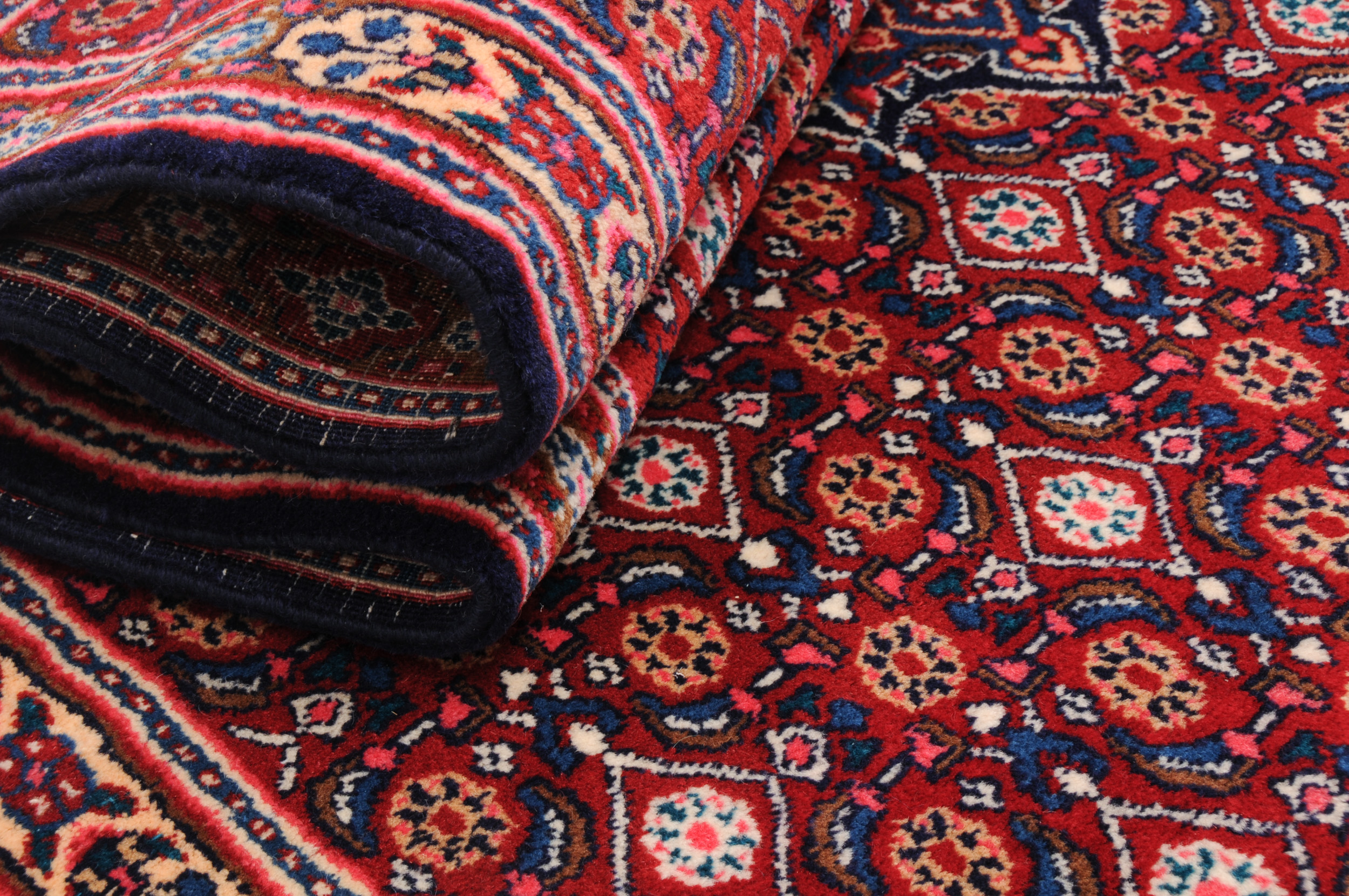 This Moud Mashad rug has Made with 100% Wool with a Cotton foundation. The design is Herati the field color is Blue and the border is Blue. It has a knot density of 225 kpsi.