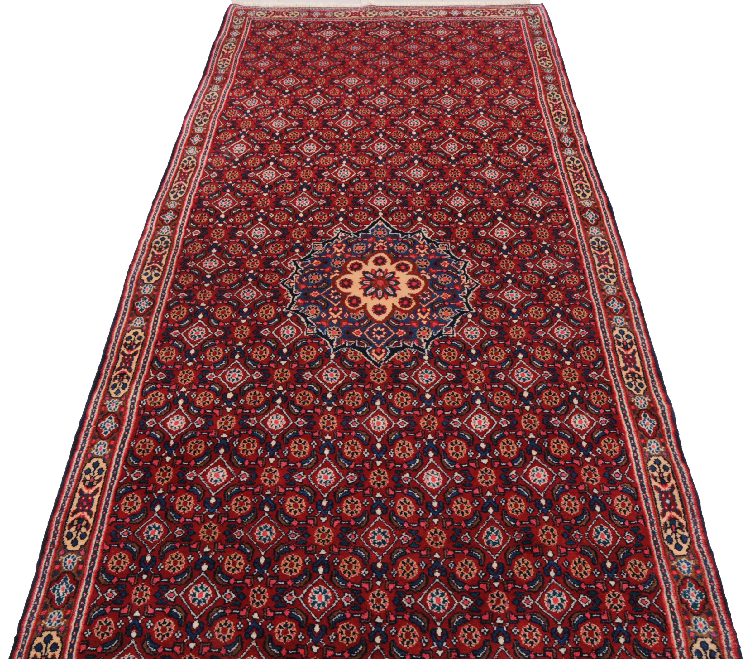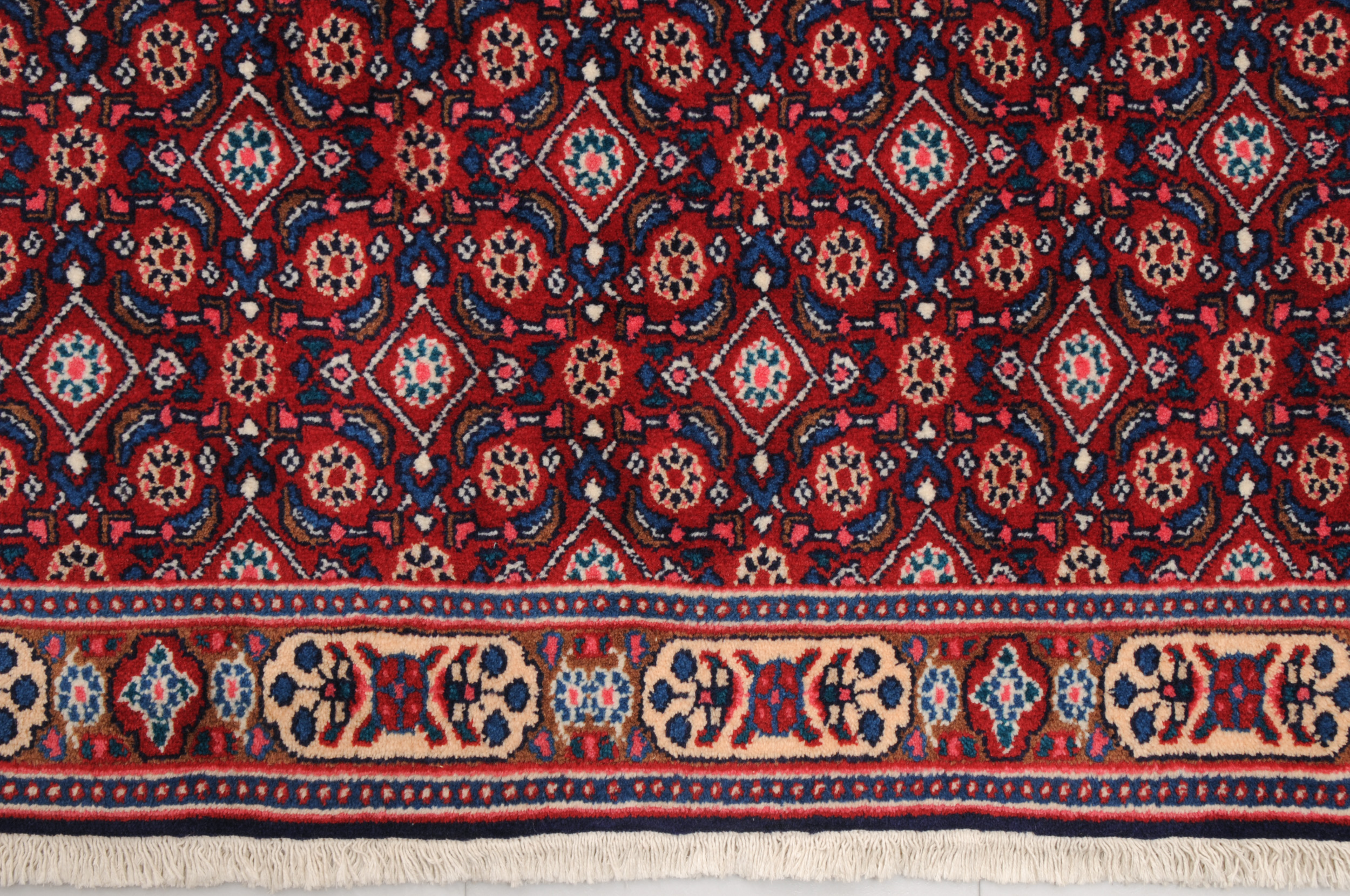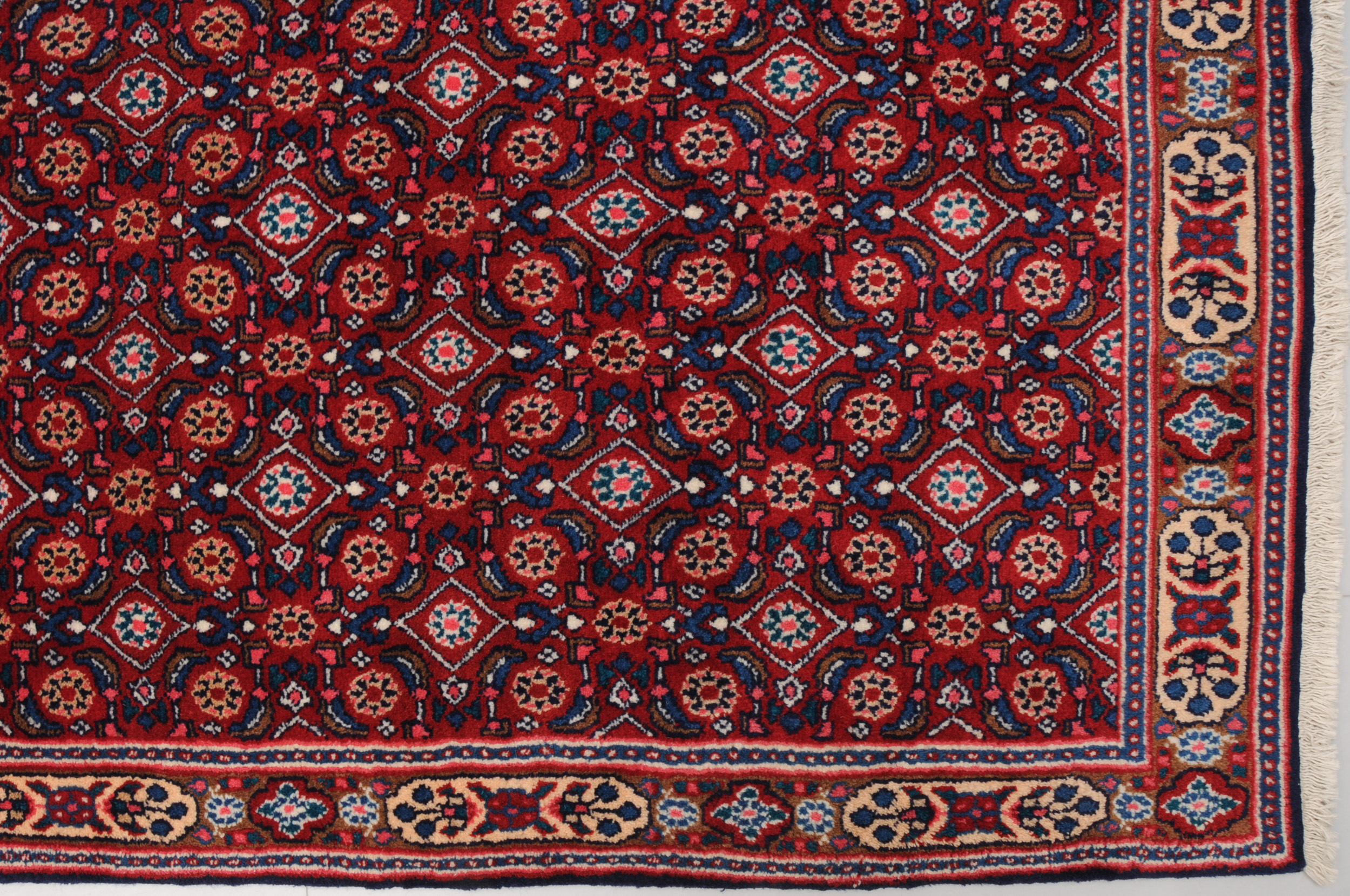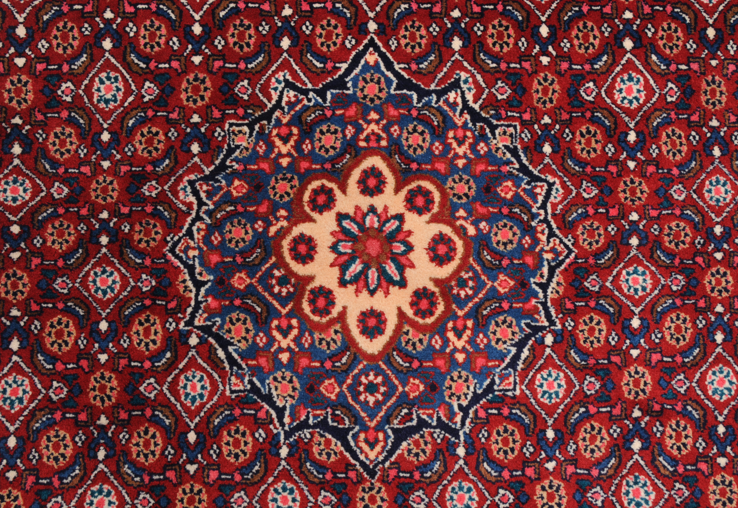 This Moud Mashad rug has Made with 100% Wool with a Cotton foundation. The design is Herati the field color is Blue and the border is Blue. It has a knot density of 225 kpsi.