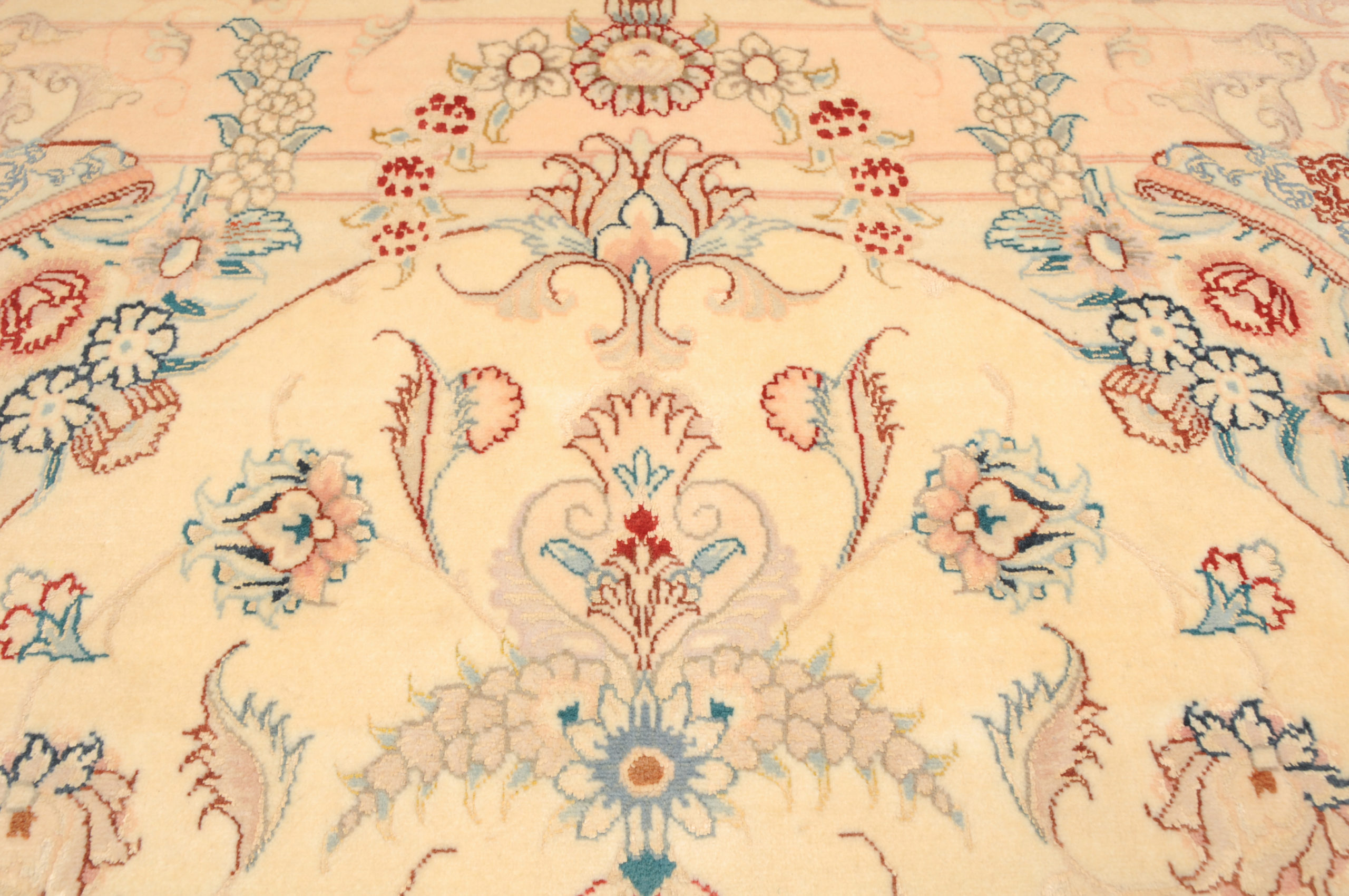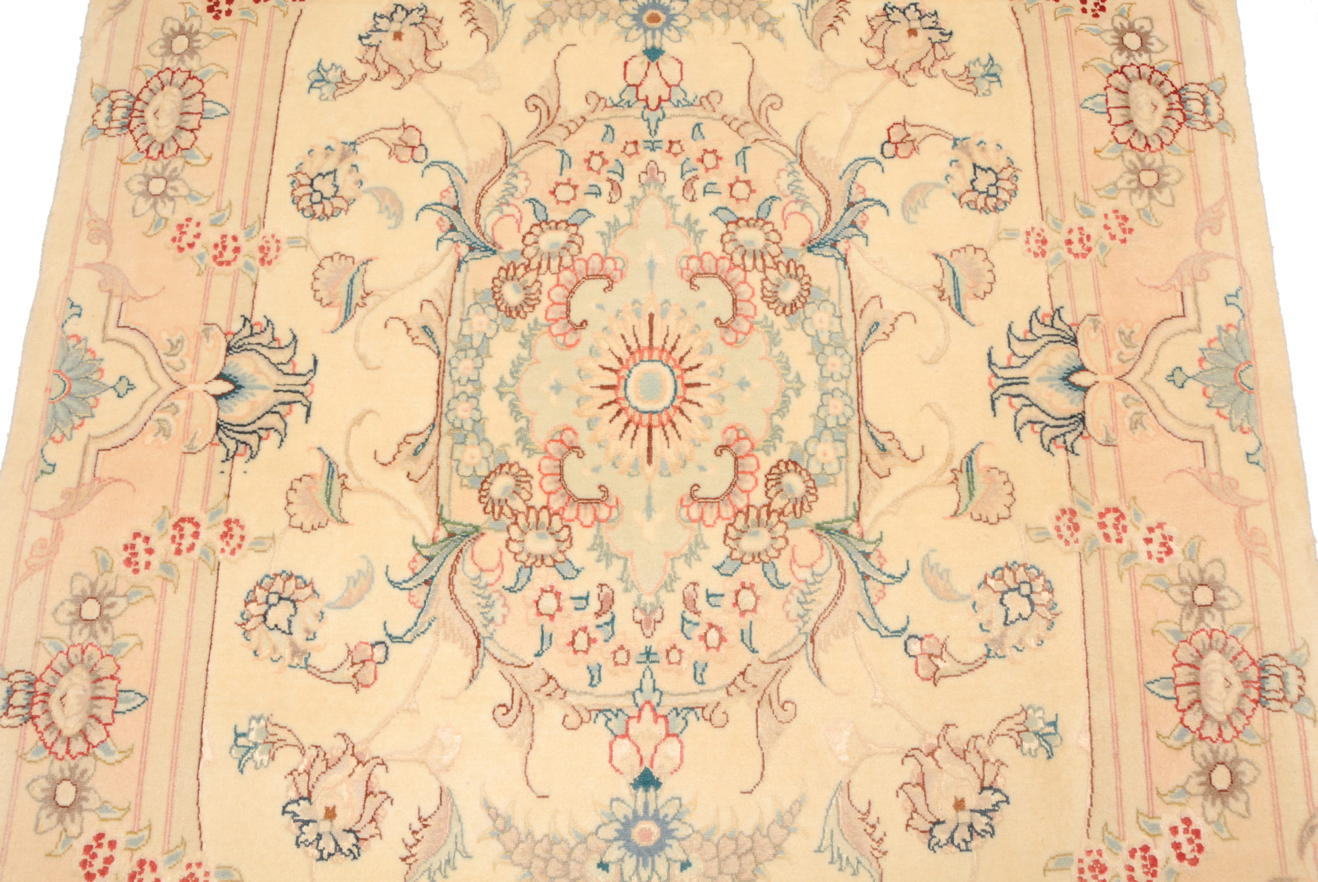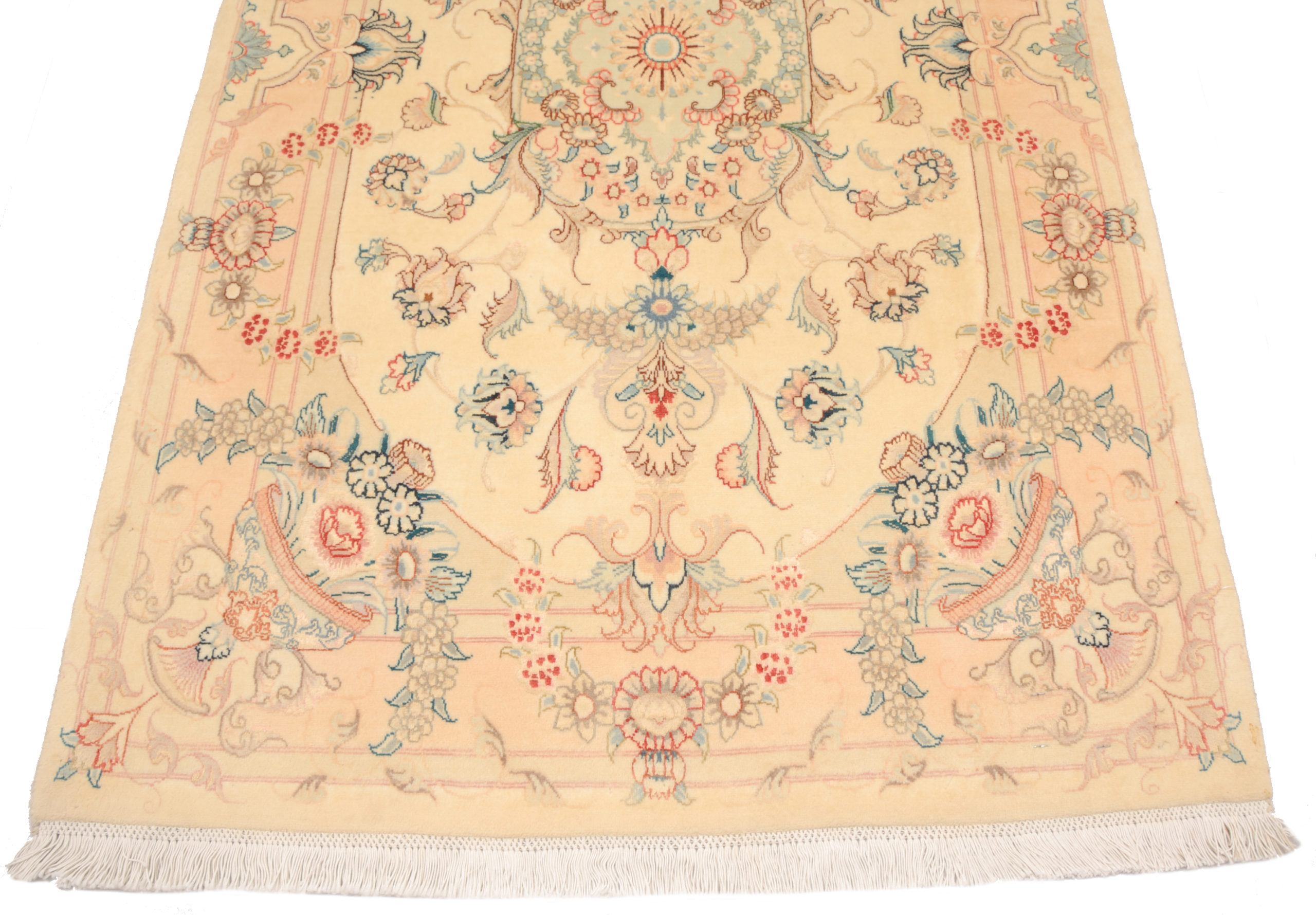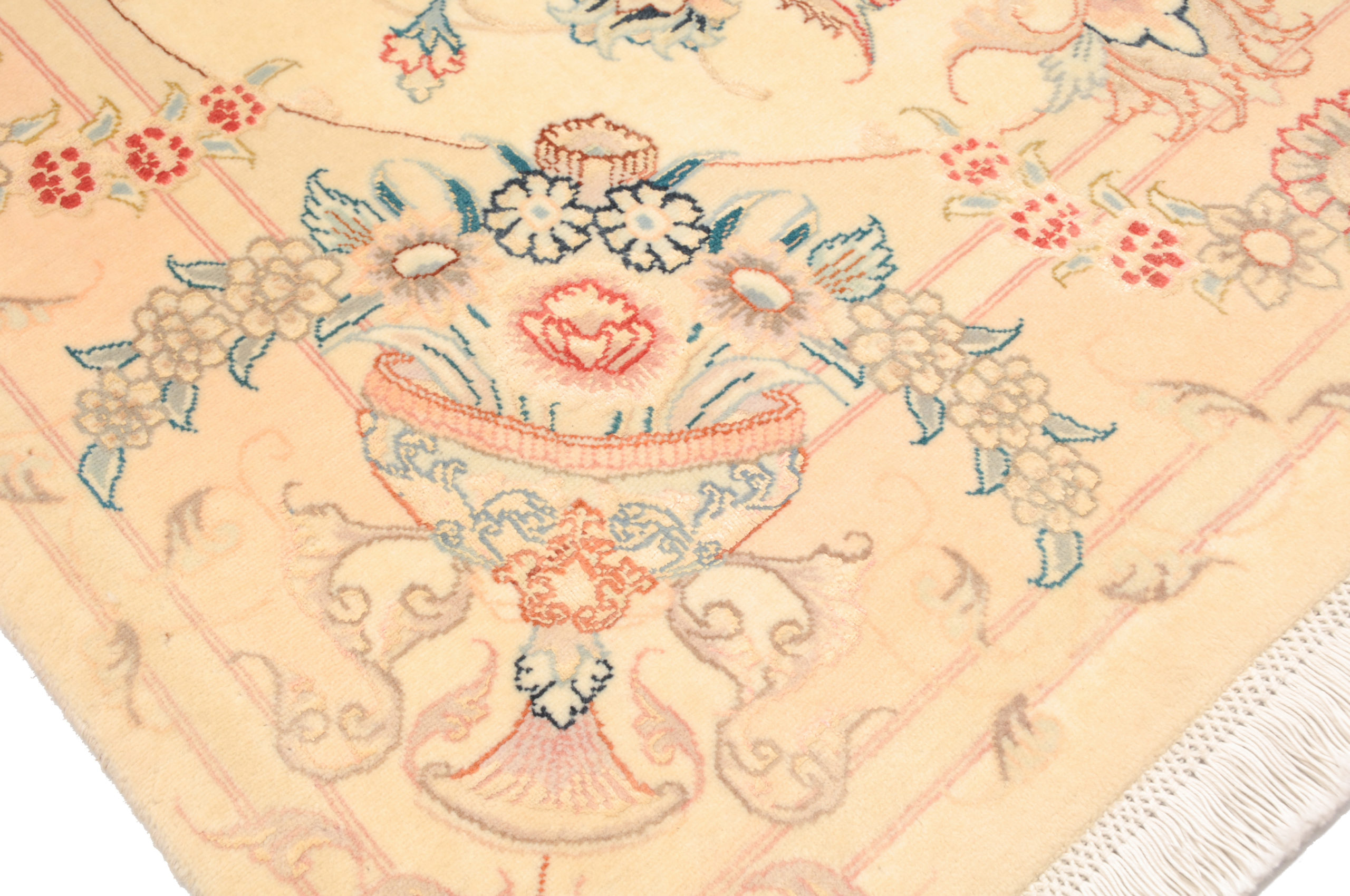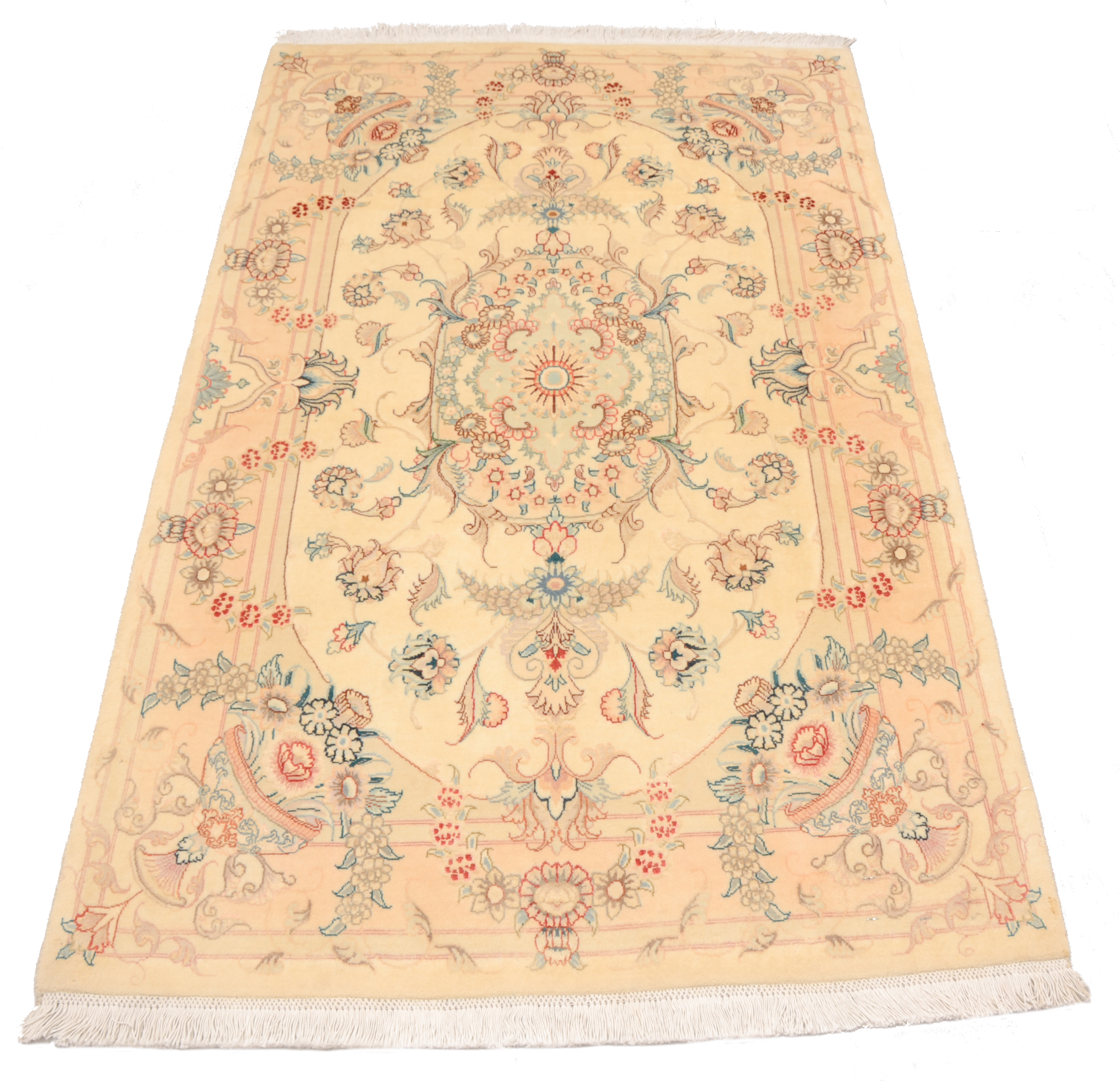 This exquisite New 3’2″ x 5′ Persian Tabriz rug is sure to add a touch of luxury to any home, hand-knotted wool and silk pile on a Cotton foundation at approximately 324KPSI resulting in a luxurious and extremely durable rug.