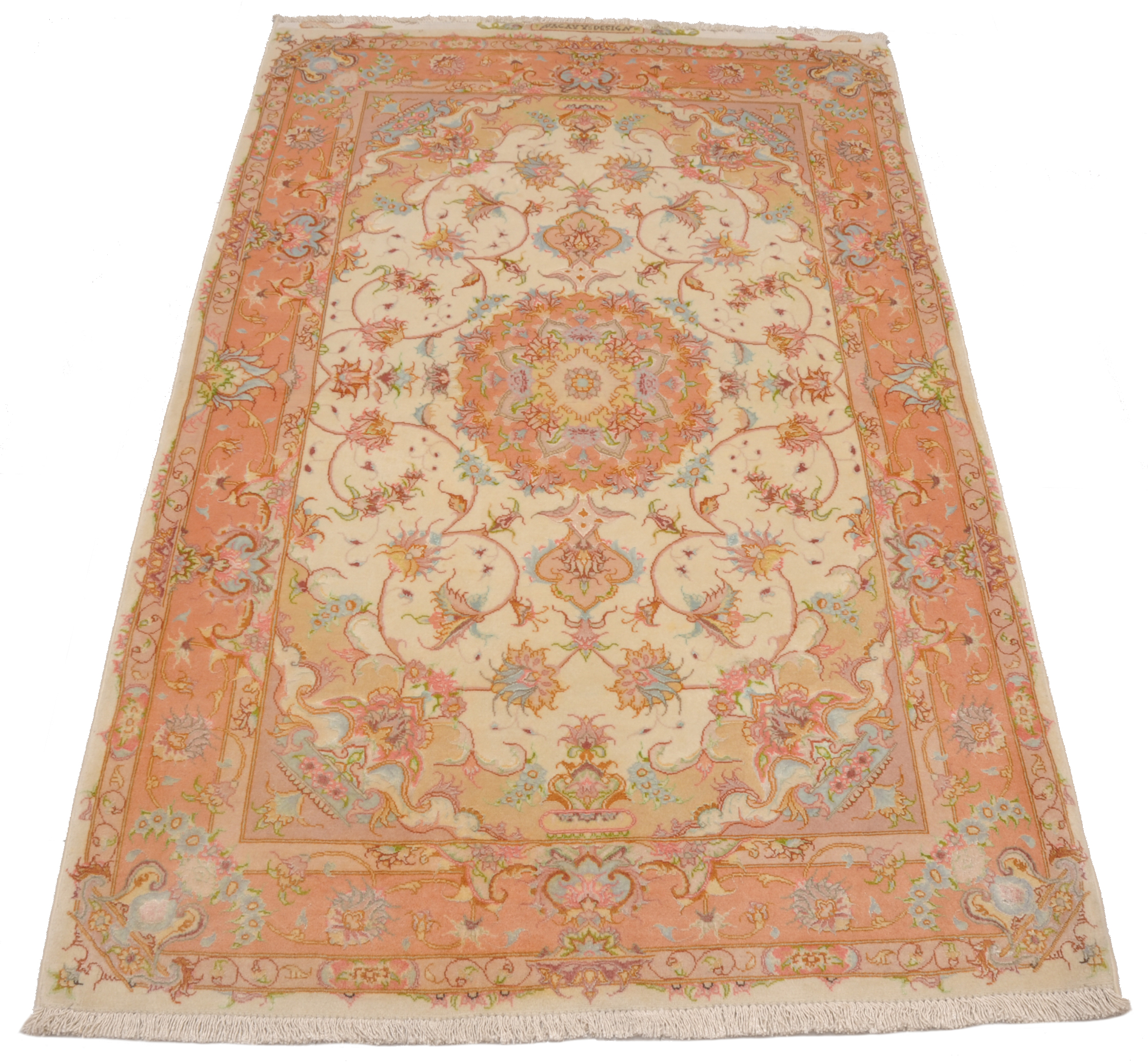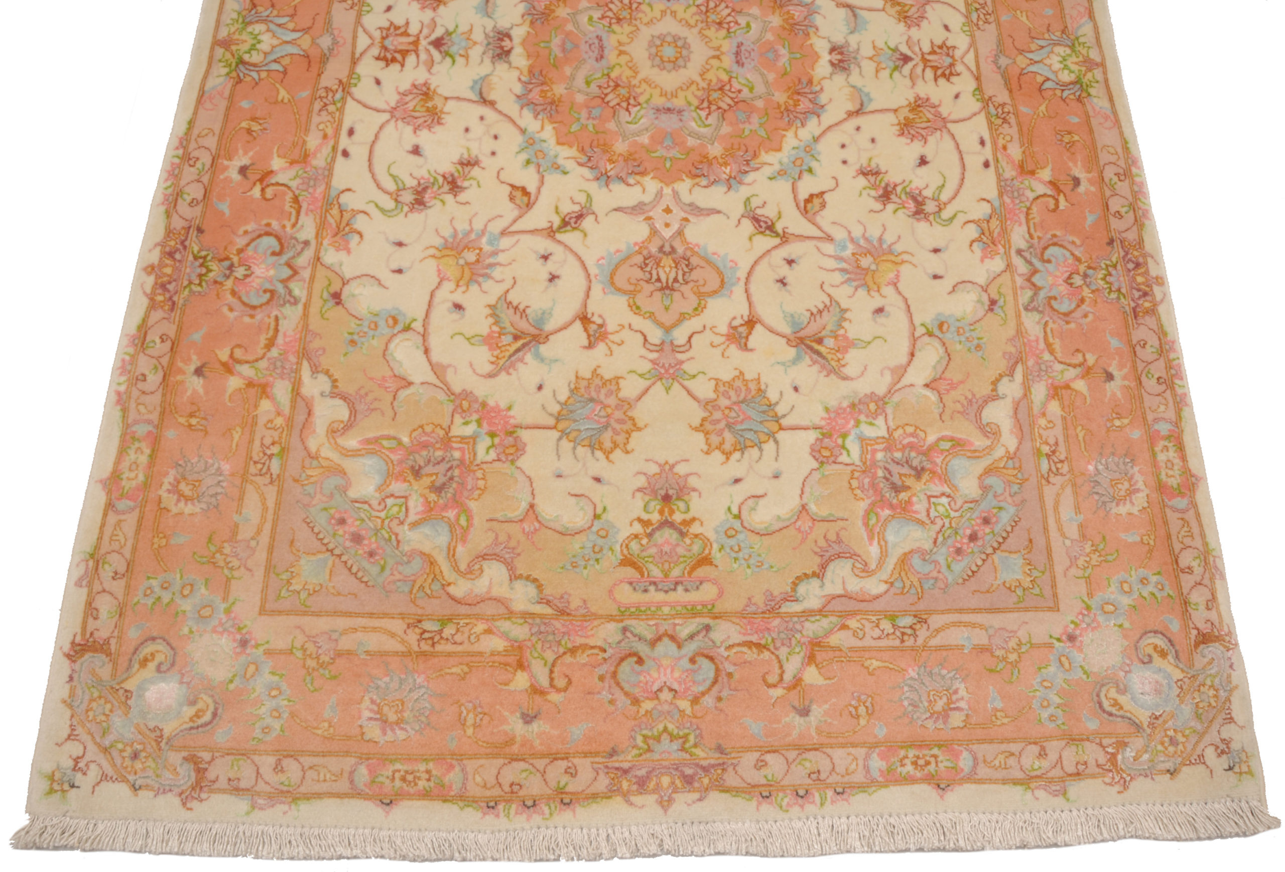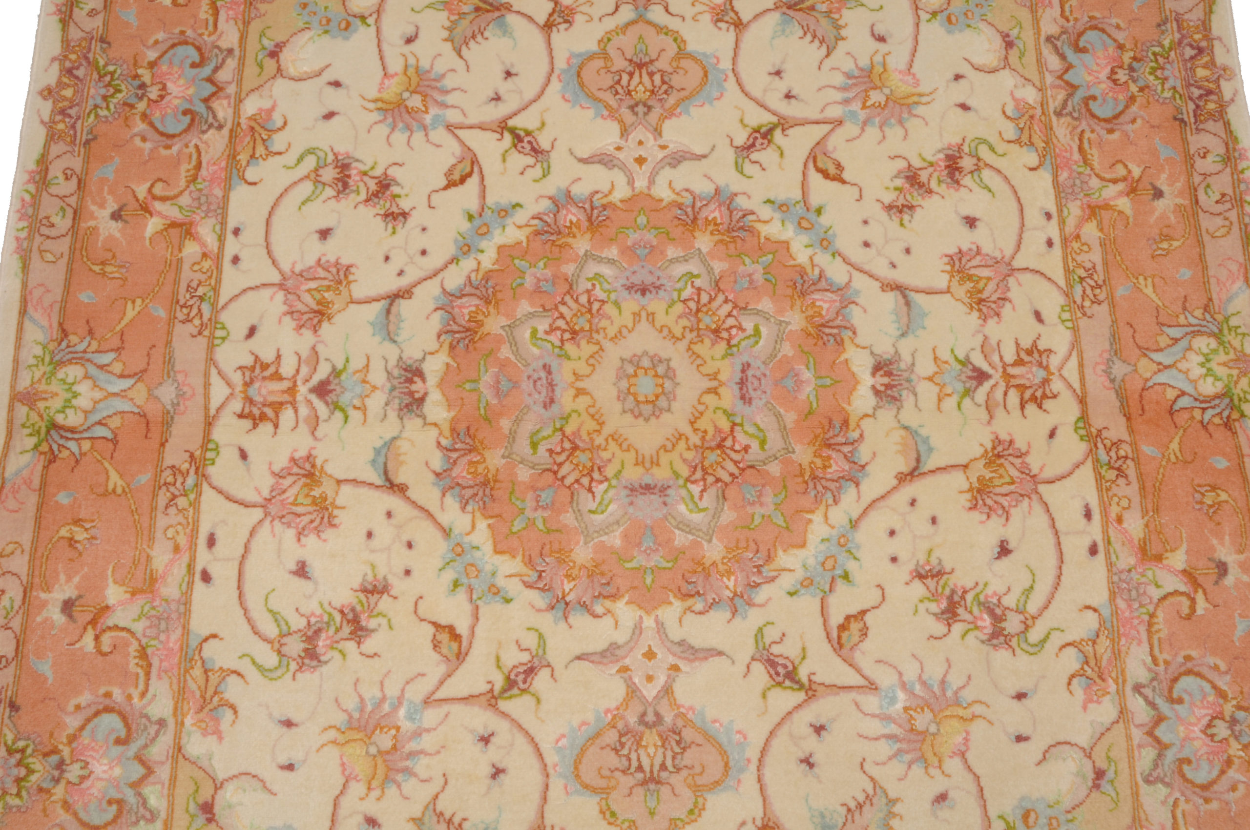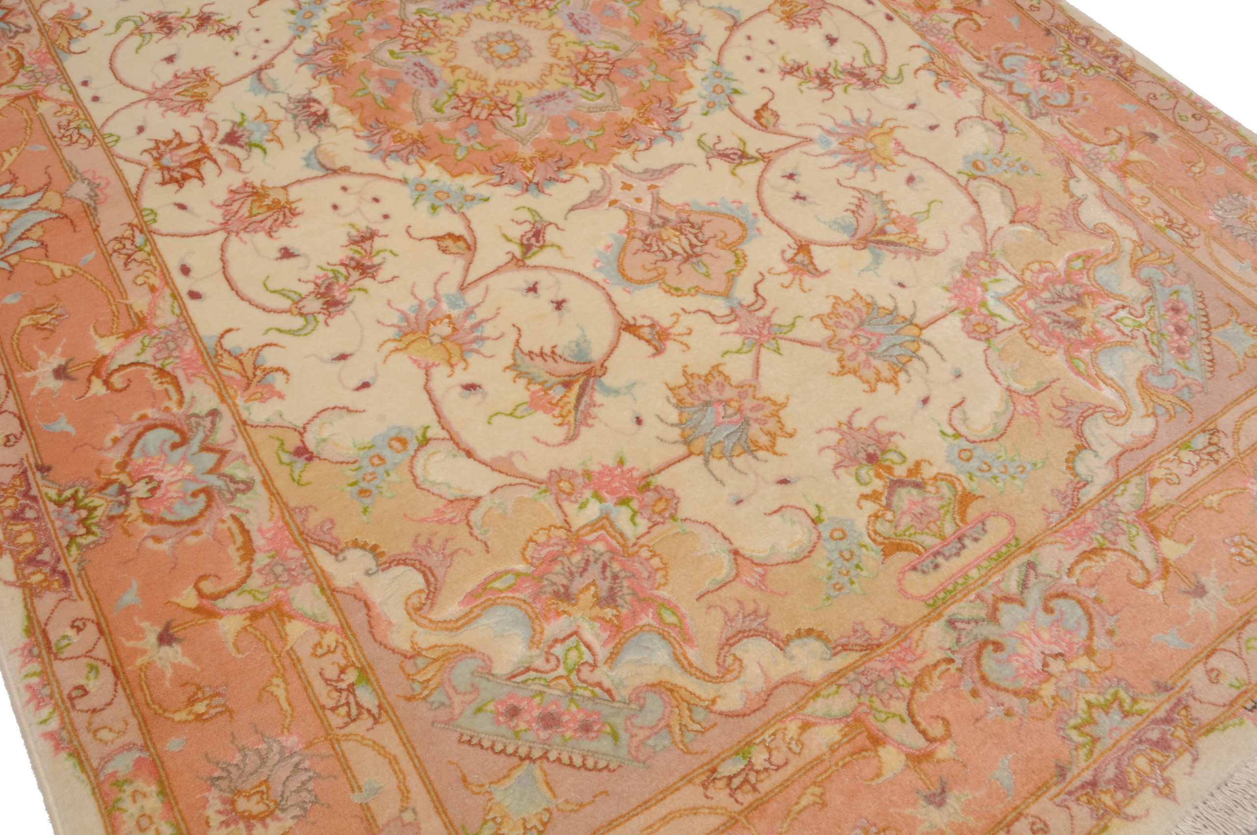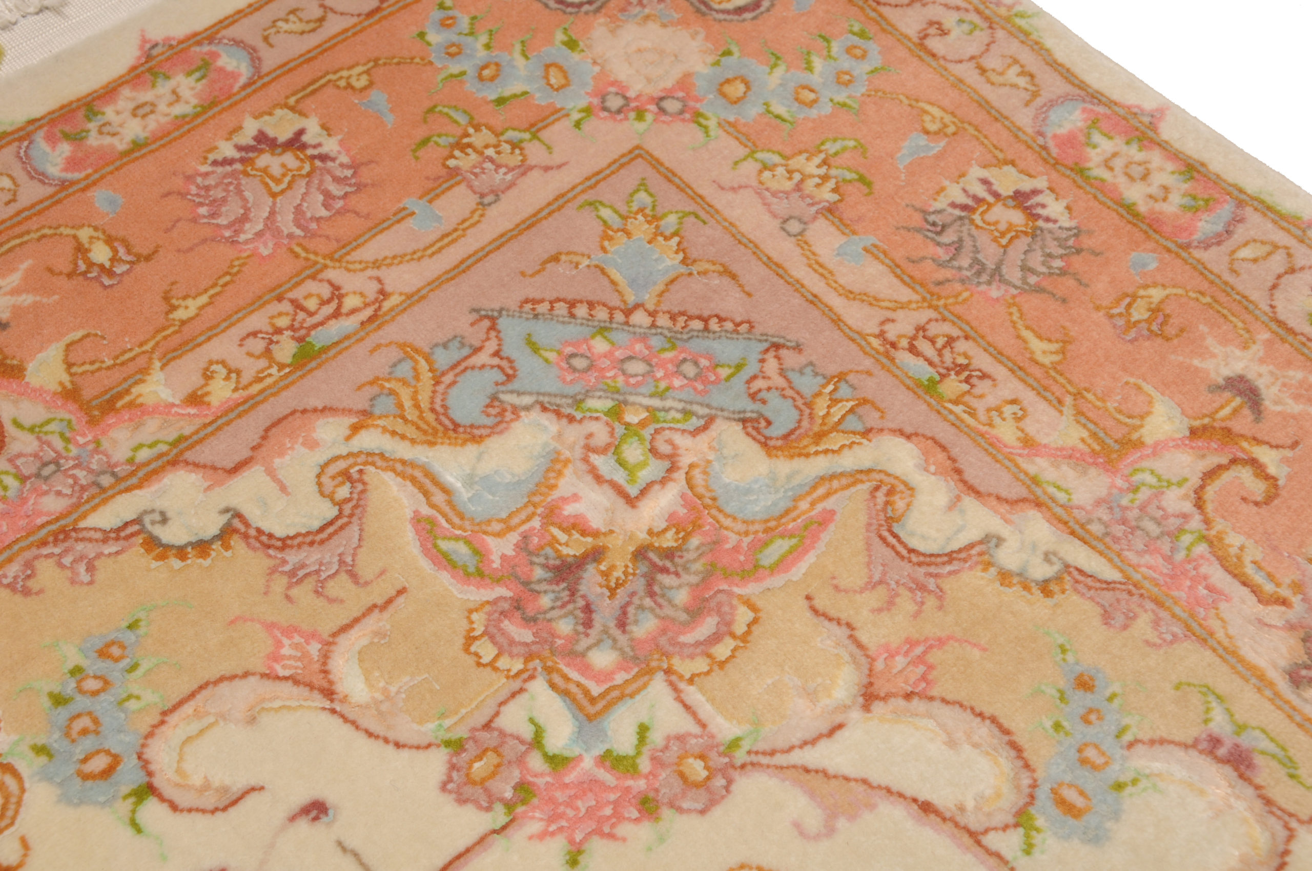This exquisite New 3’’3″ x 5′ Persian Tabriz rug is sure to add a touch of luxury to any home, hand-knotted wool and silk pile on a Silk foundation at approximately 400KPSI resulting in a luxurious and extremely durable rug.
