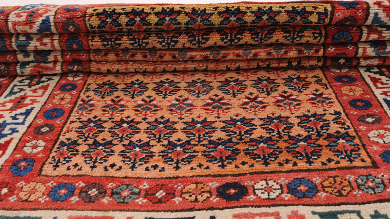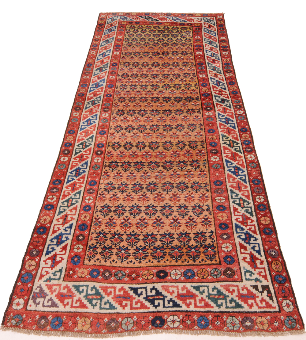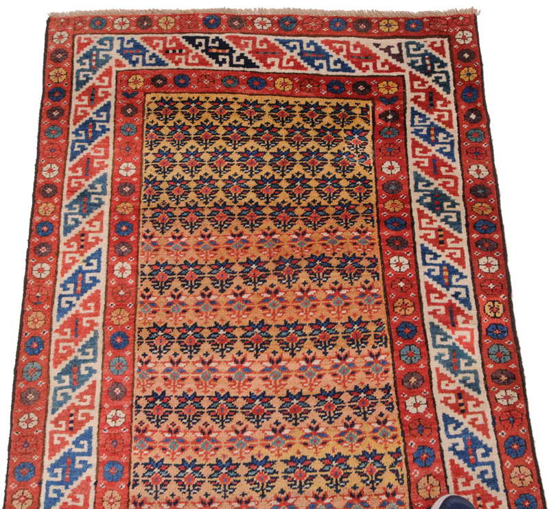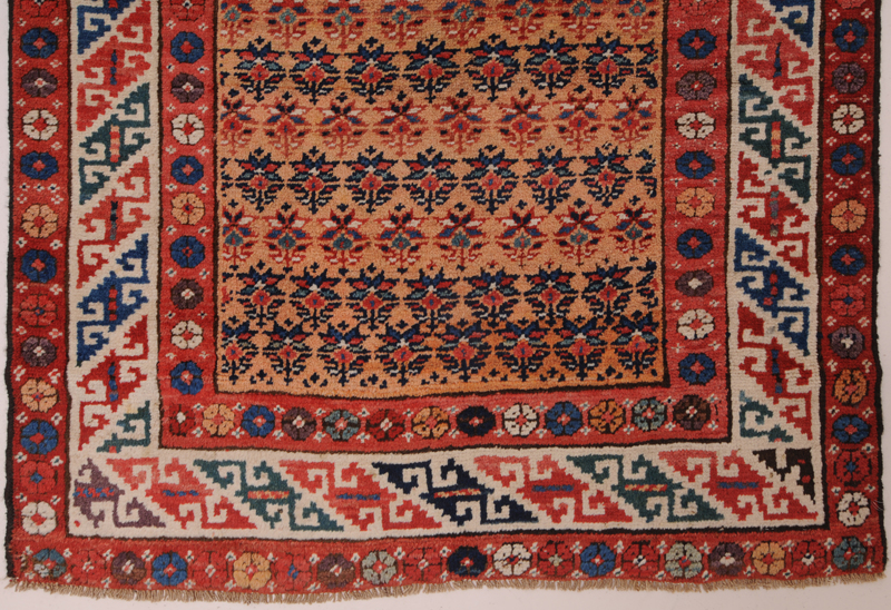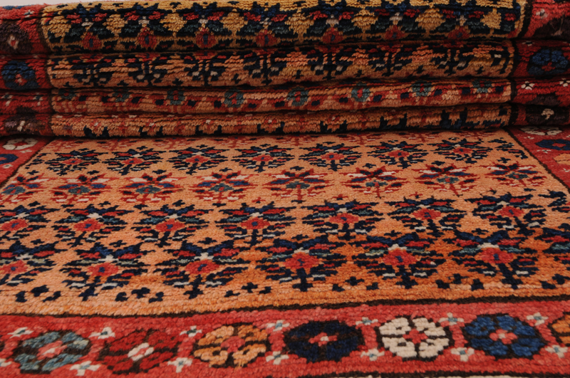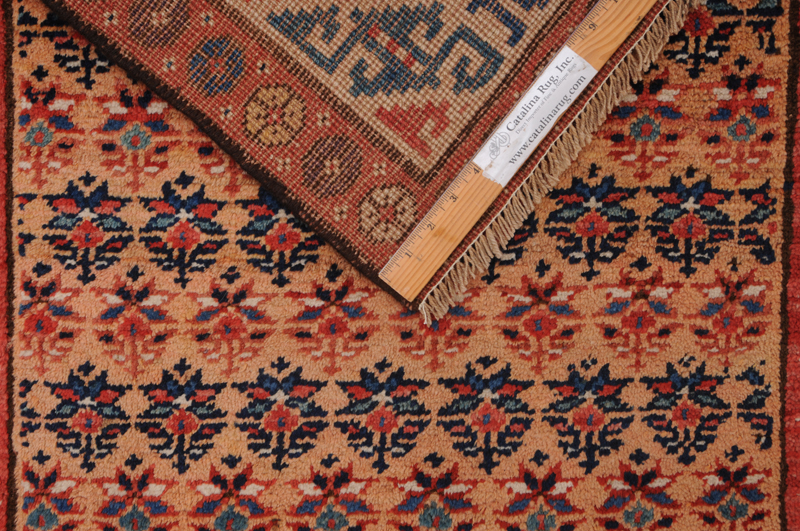 This Persian Rug is Hand Knotted with 100% Wool Pile and Cotton Foundation. This Rug has a Herati Design and its Main colors are Orange, Beige, Blue.