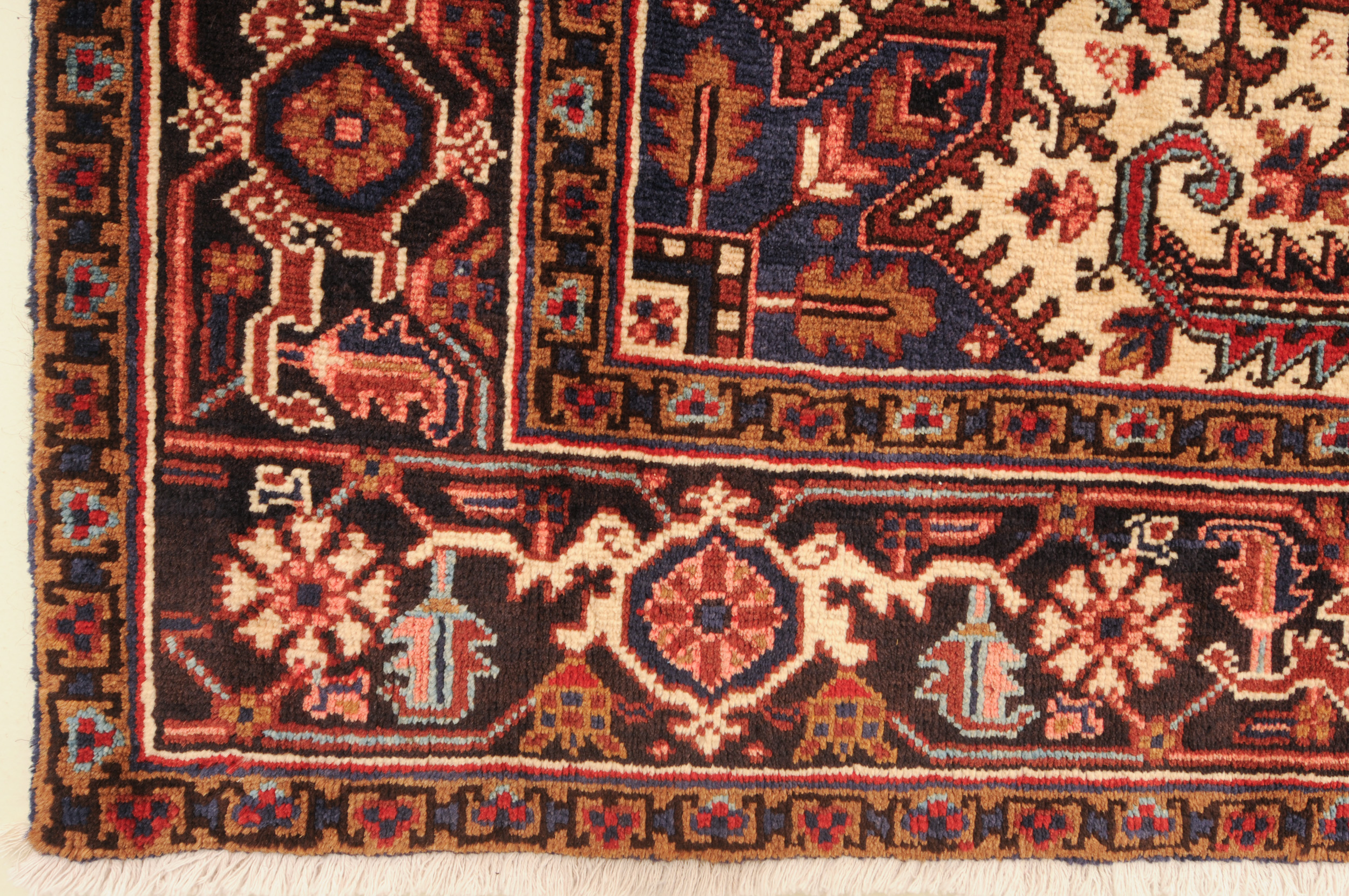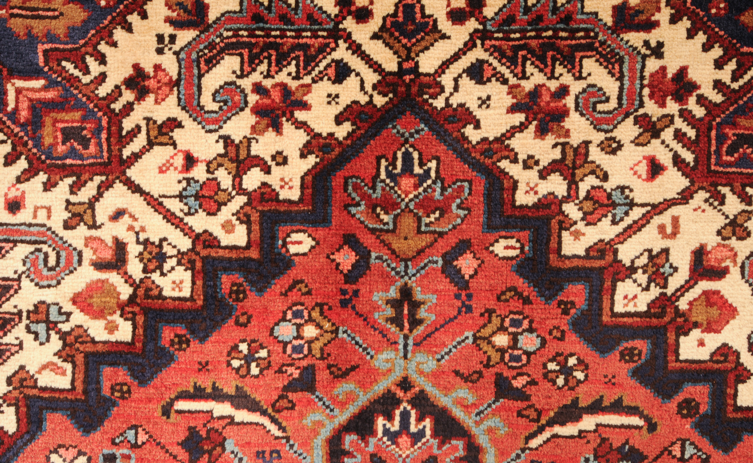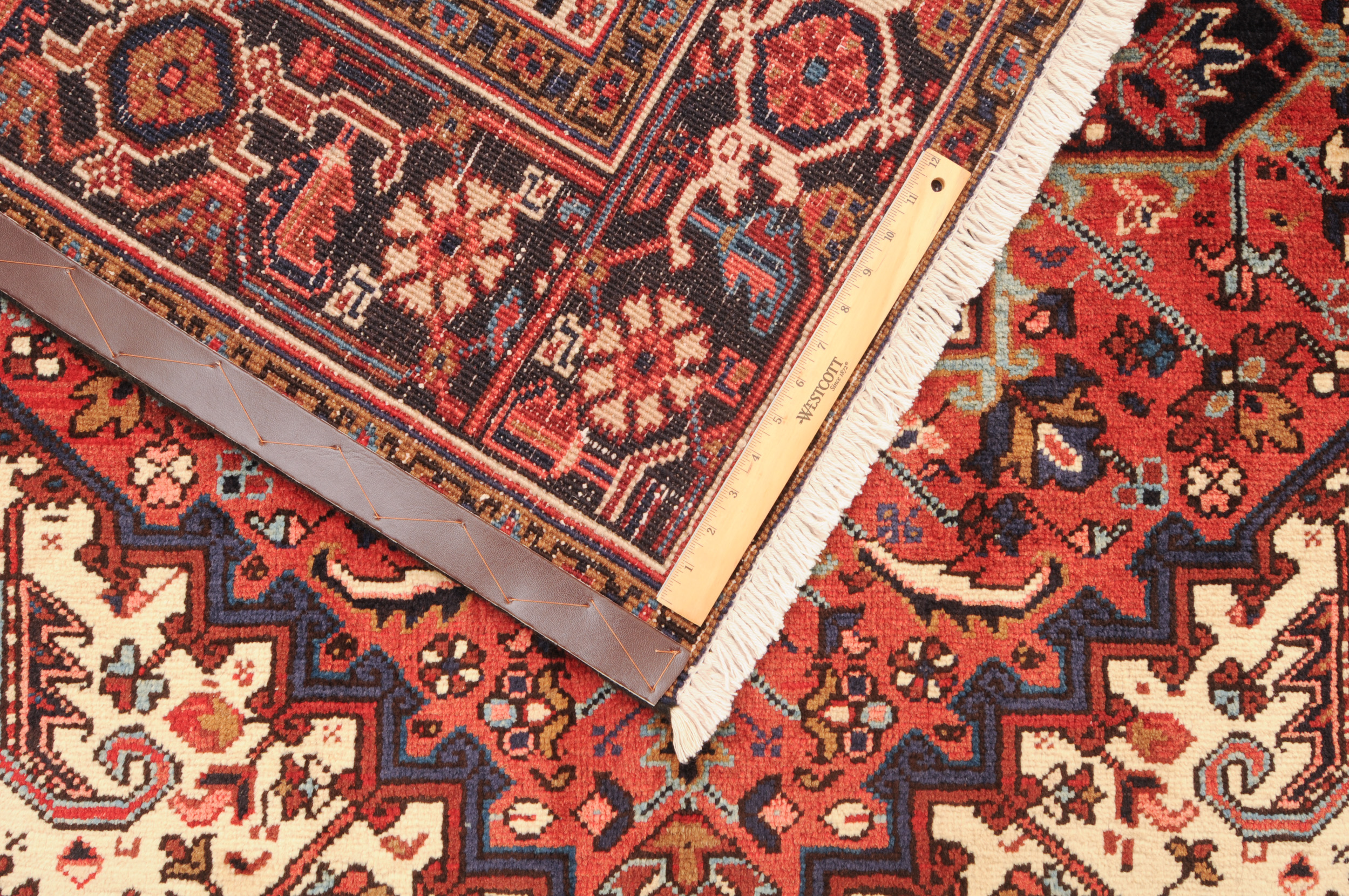 This Persian Rug is Hand Knotted with 100% Wool Pile and Cotton Foundation. This Rug has a Geometrical Design and its Main colors are Orange, Beige, Blue.