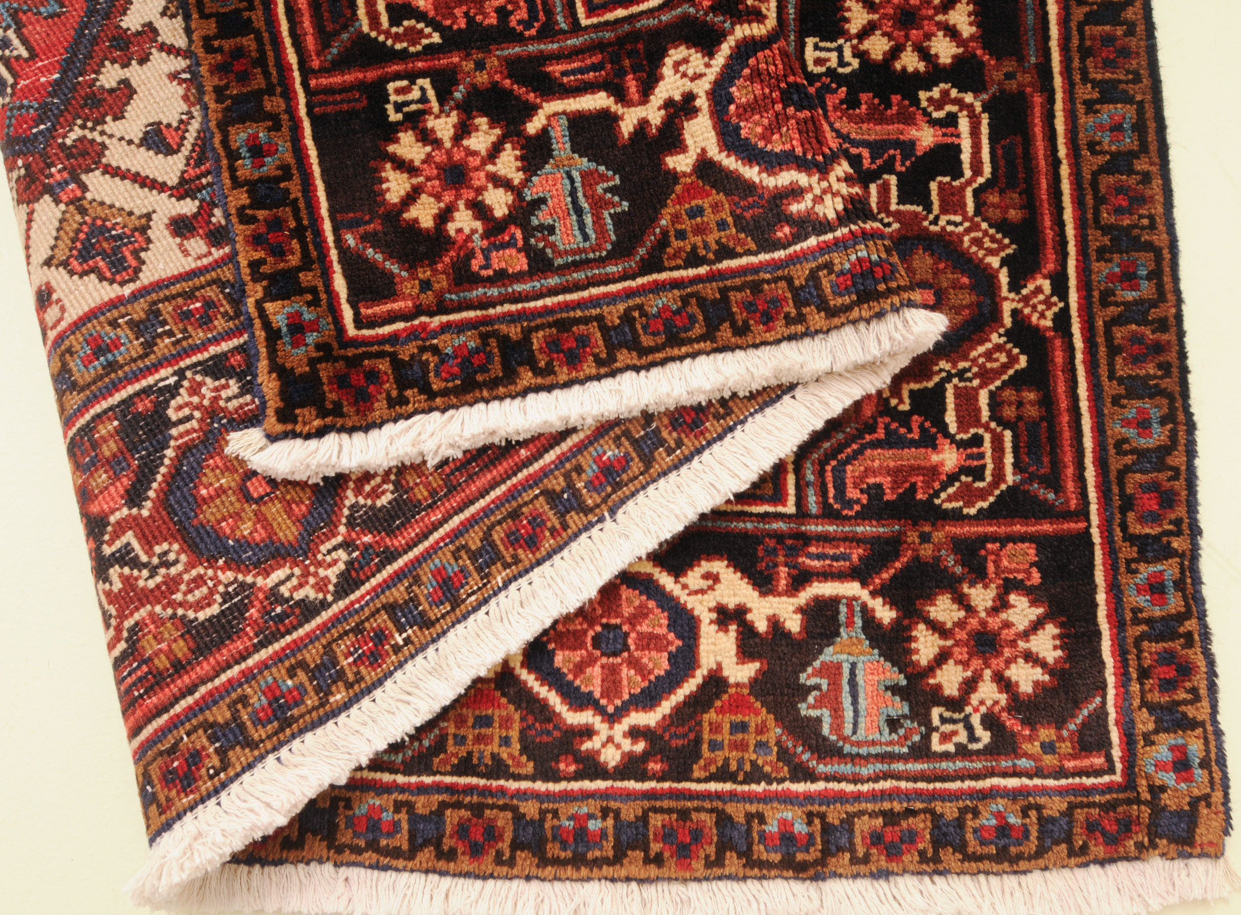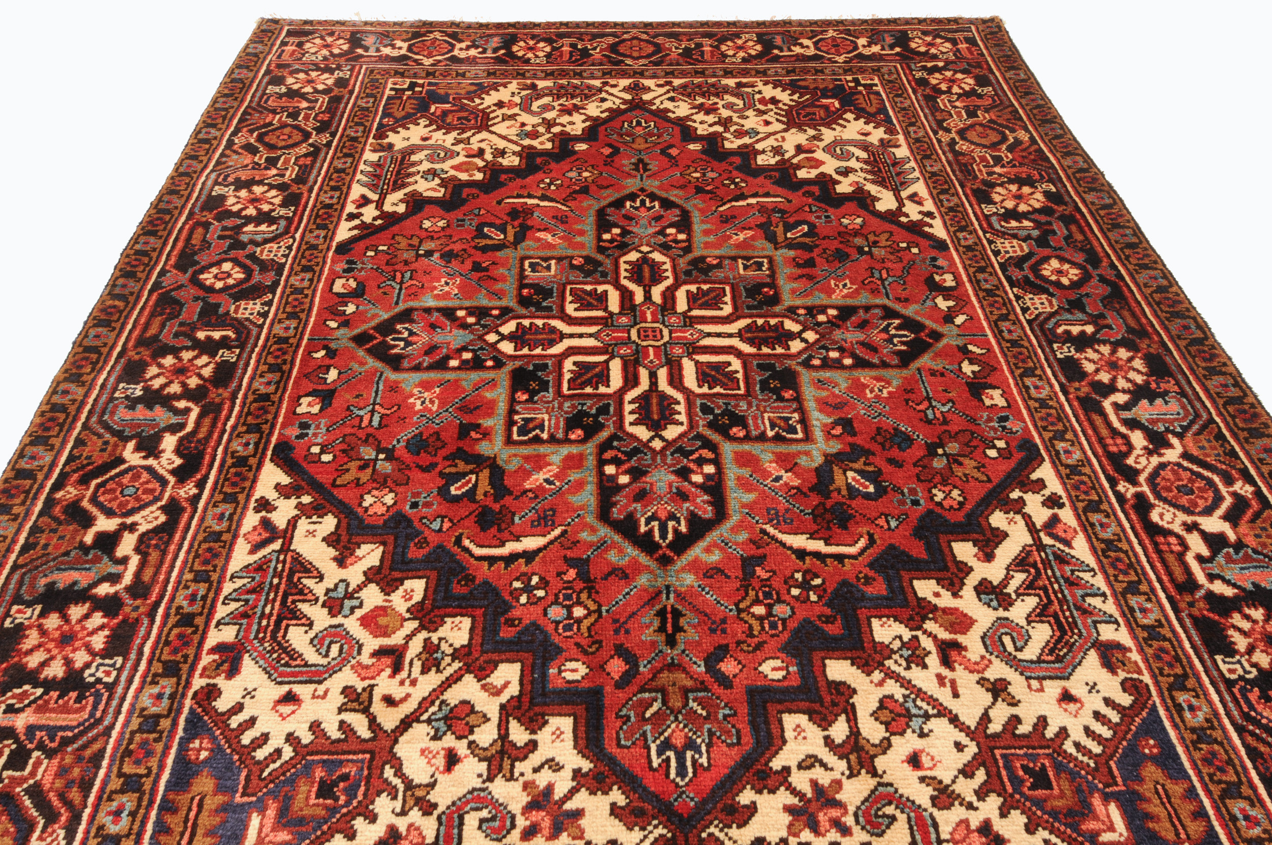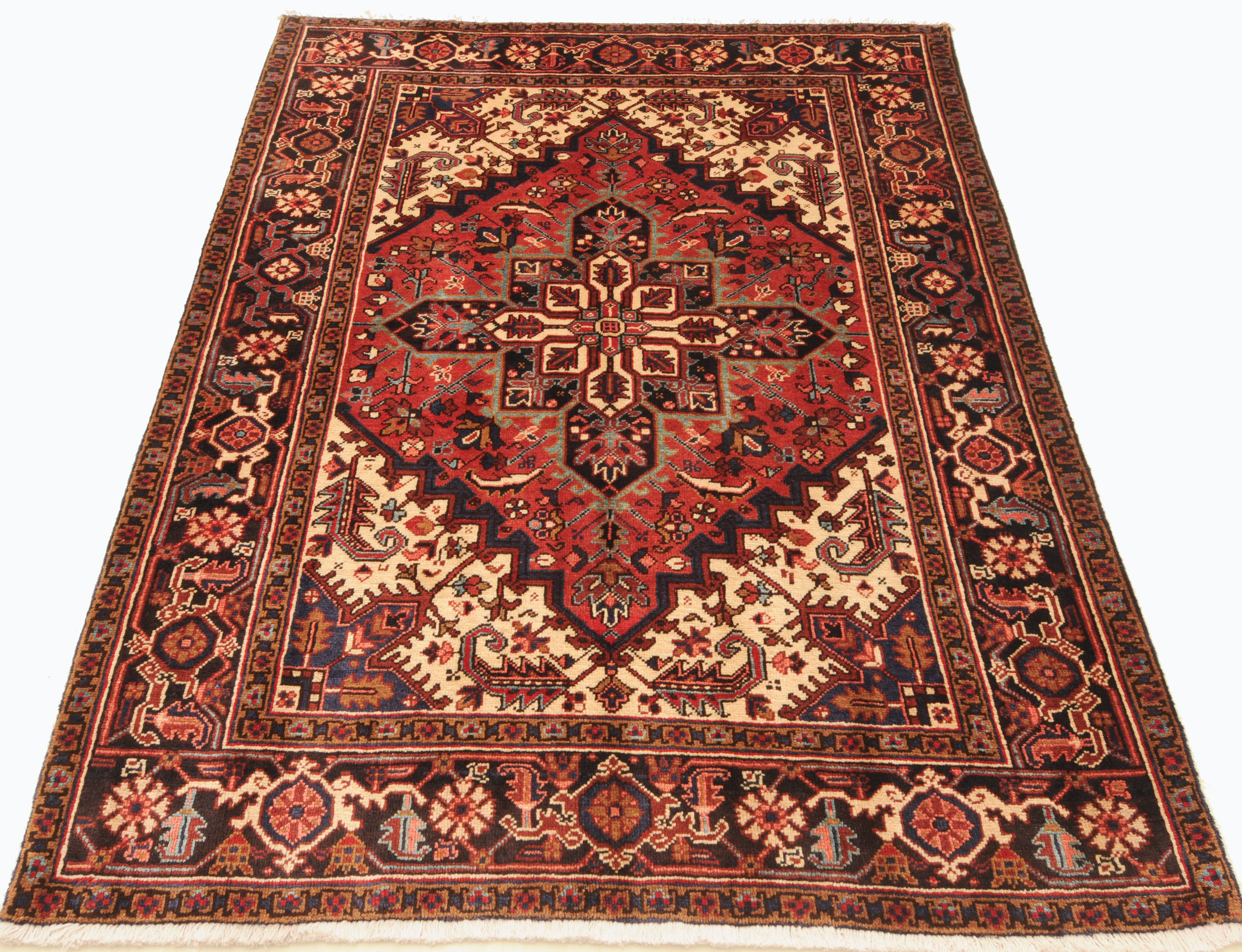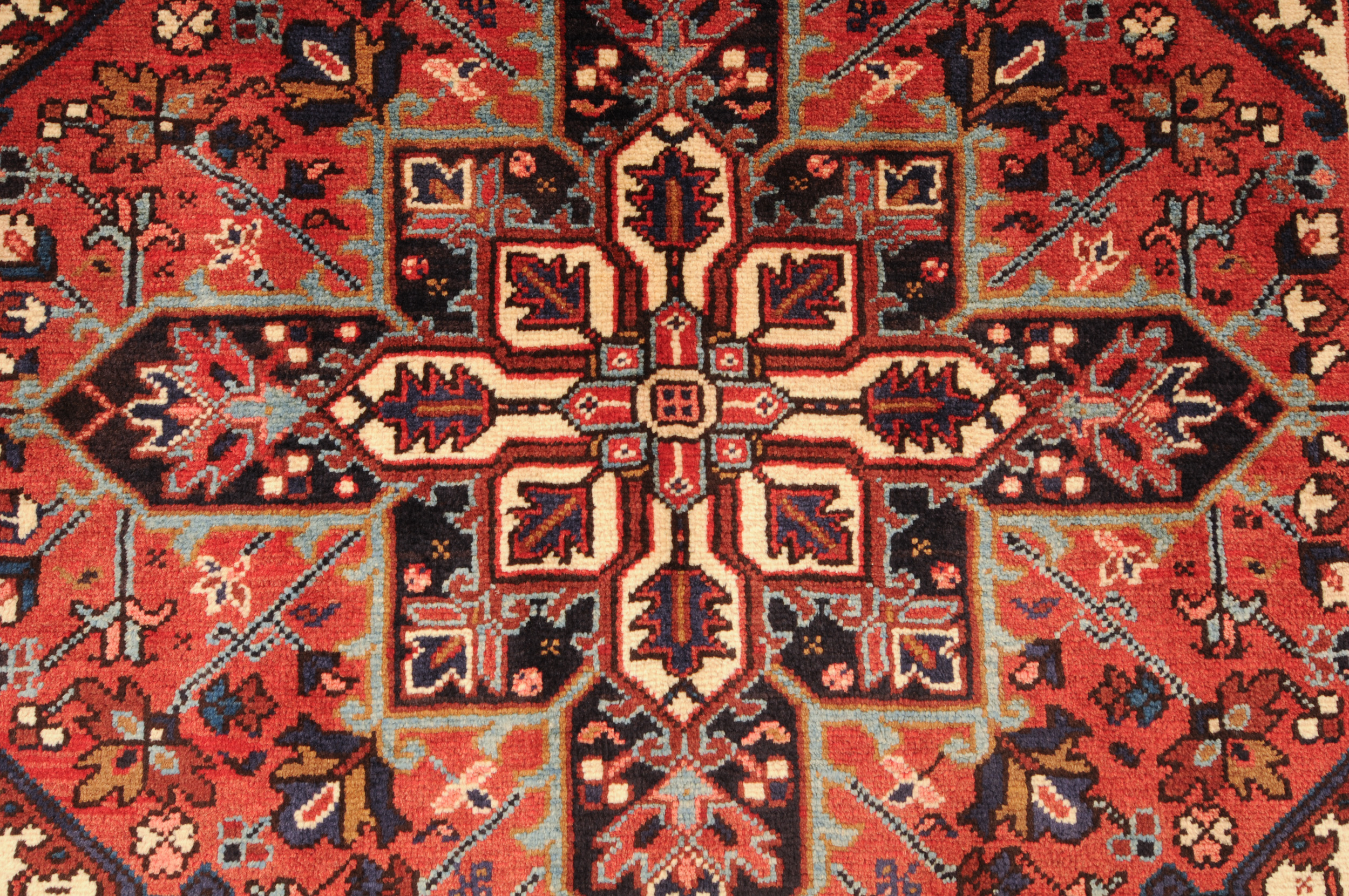 This Persian Rug is Hand Knotted with 100% Wool Pile and Cotton Foundation. This Rug has a Geometrical Design and its Main colors are Orange, Beige, Blue.