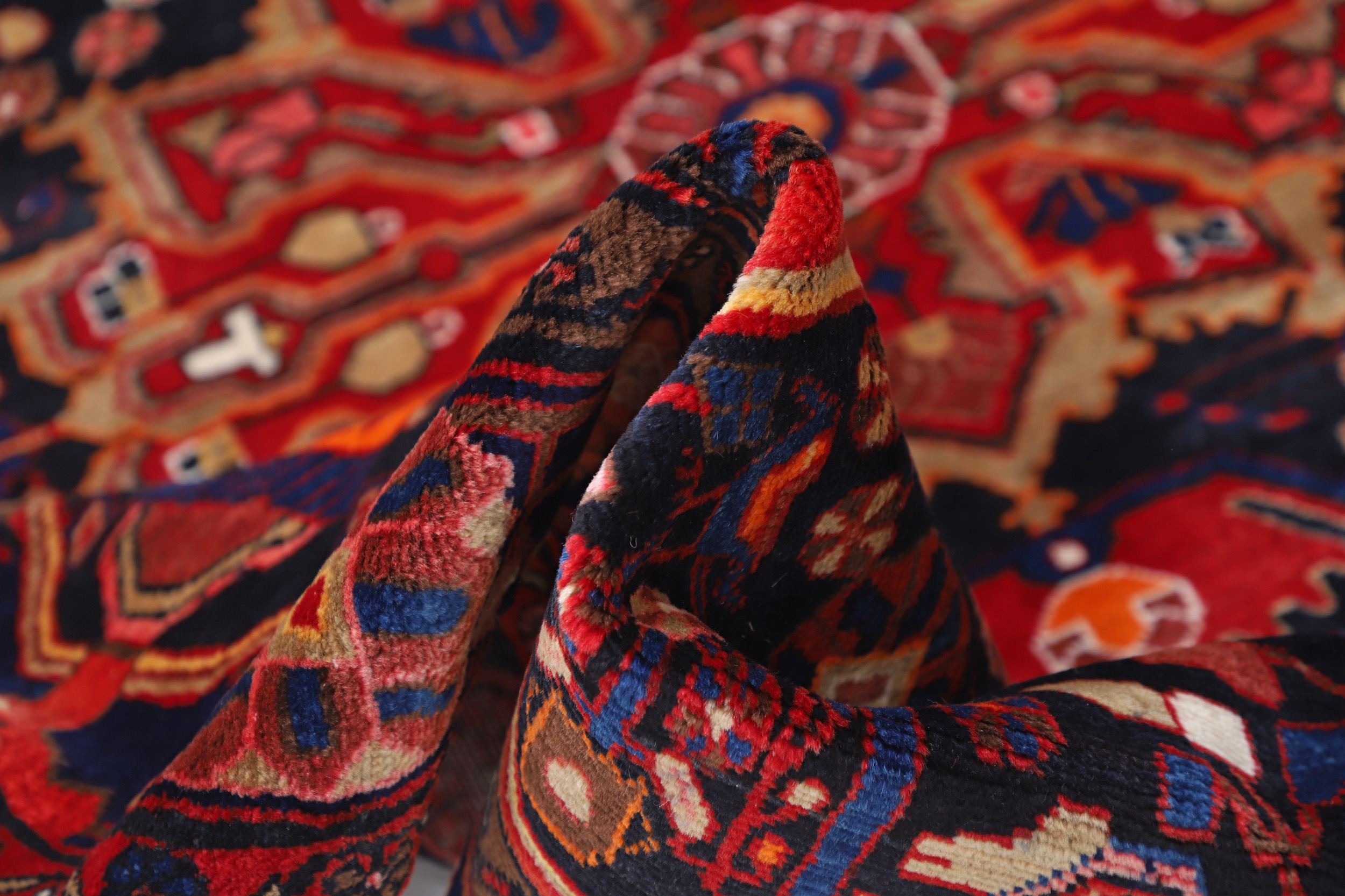 This Hand Knotted Malayer Persian rug measures 4’11” x 8’2″ and has an aged appearance, ranging from 0-20 years. The rug features a striking combination of black and blue colors in a geometrical pattern. With an approximate knot count of 169 KPSI, this rug is meticulously crafted using 100% wool and cotton materials. It has a medium pile height, measuring between 1/3″-3/8″.