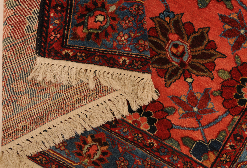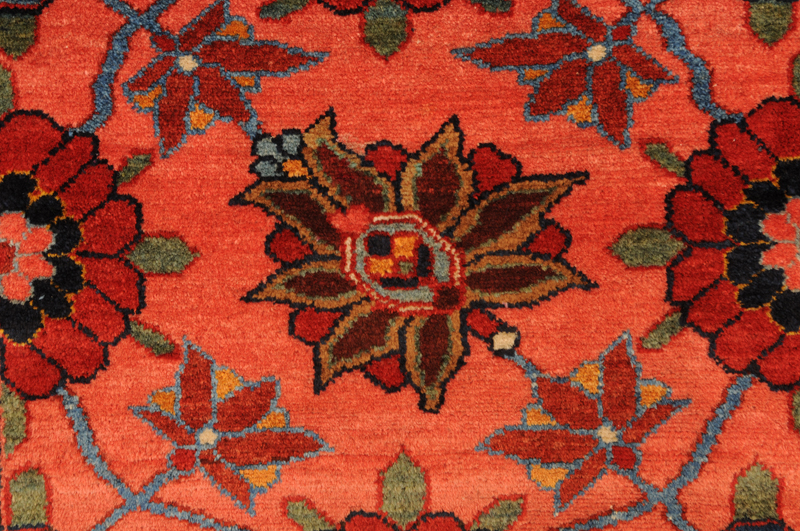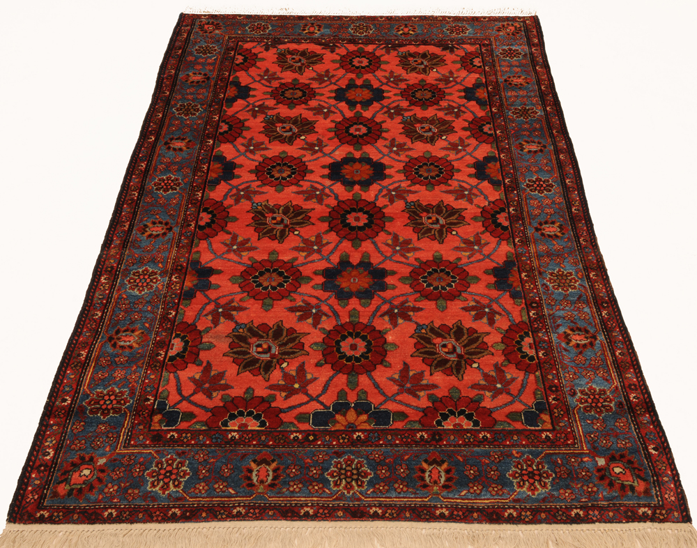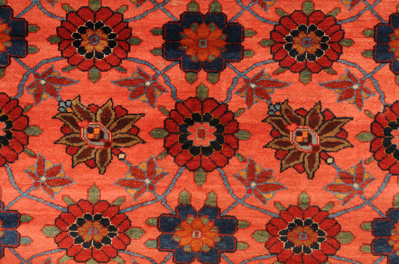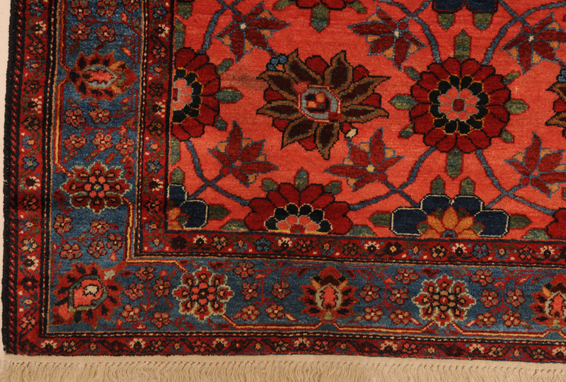 This Persian Rug is Hand Knotted with 100% Wool Pile and Cotton Foundation. This Rug has a Allover Design and its Main colors are Pink, Beige, and Blue.