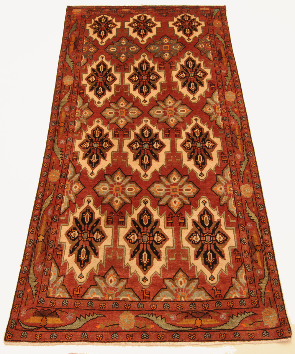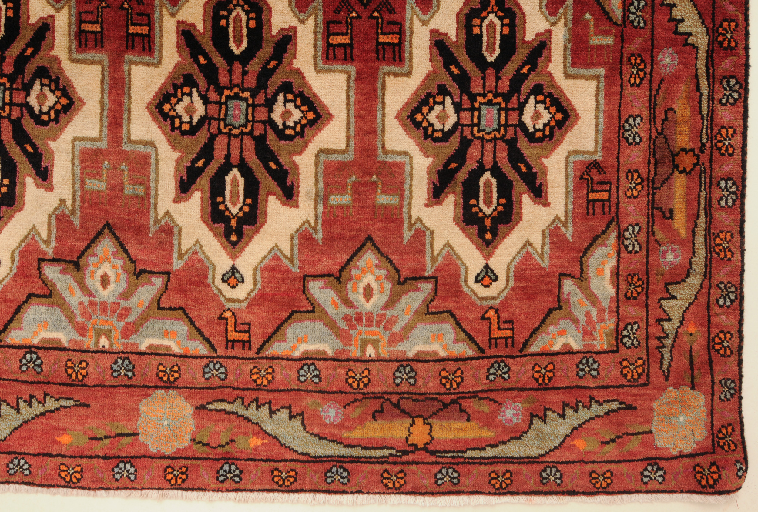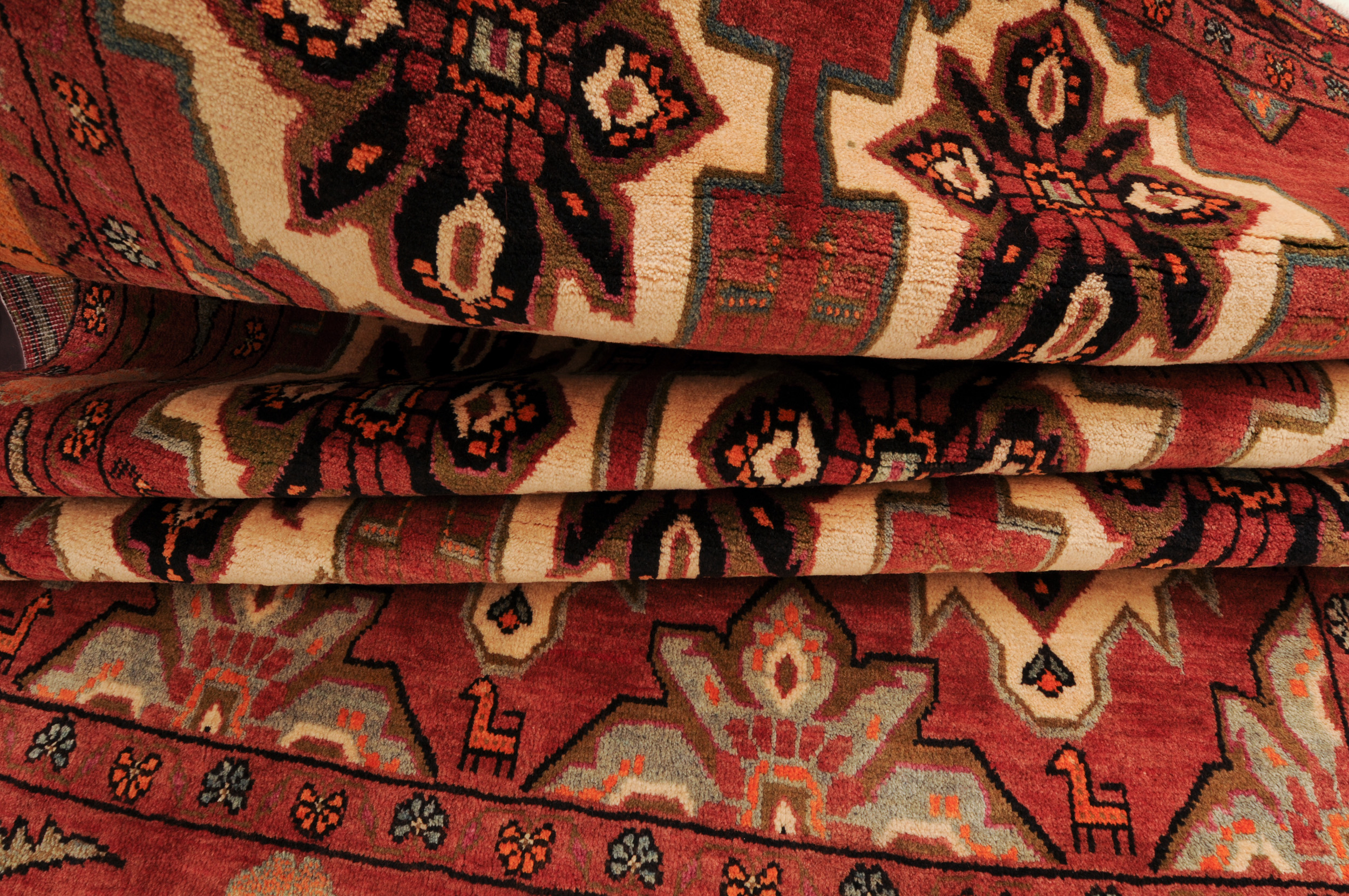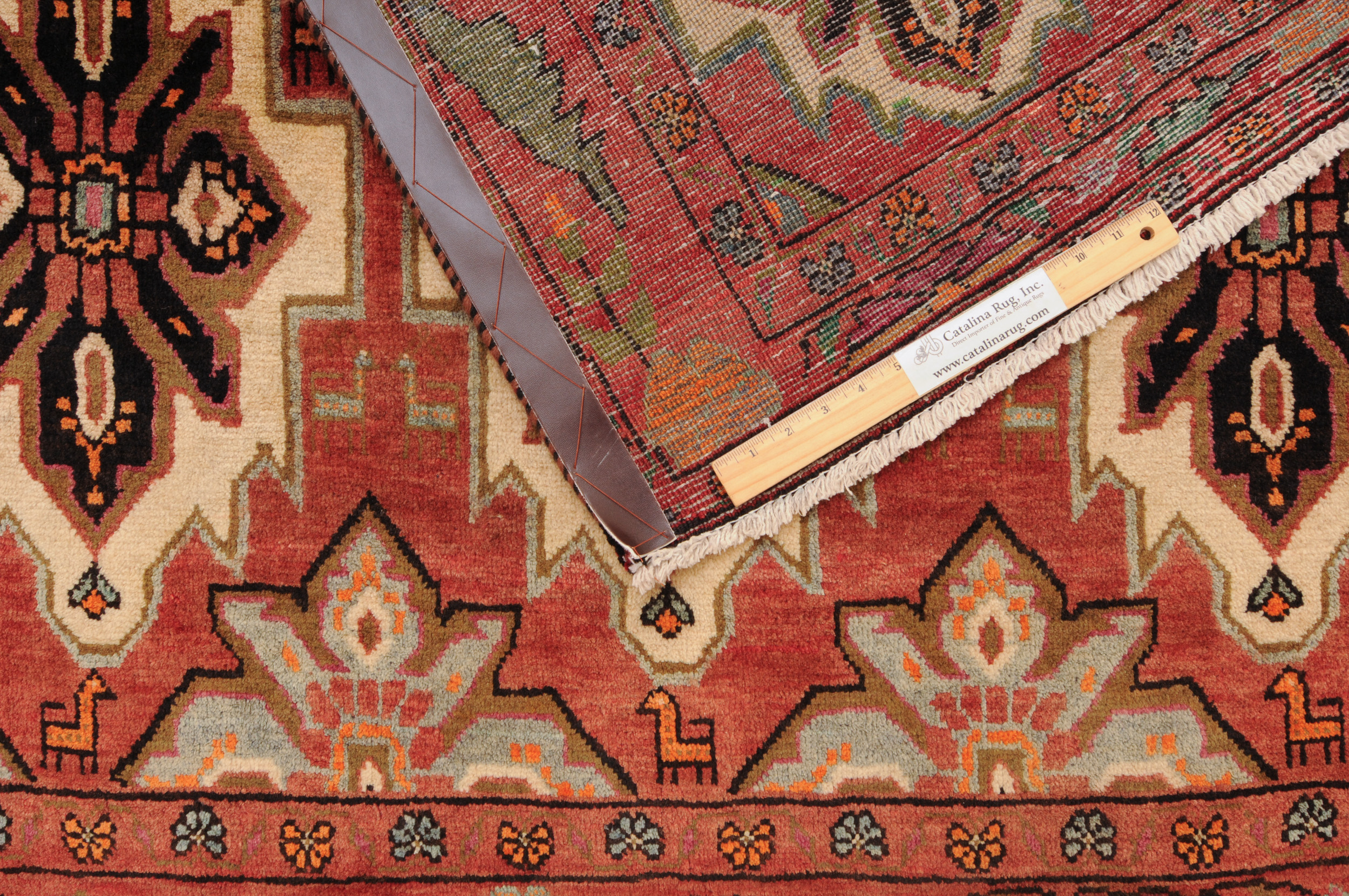 This Persian Rug is Hand Knotted with 100% Wool Pile and Cotton Foundation. This Rug has a AlloverDesign and its Main Colors are Blue, Rust, Cream