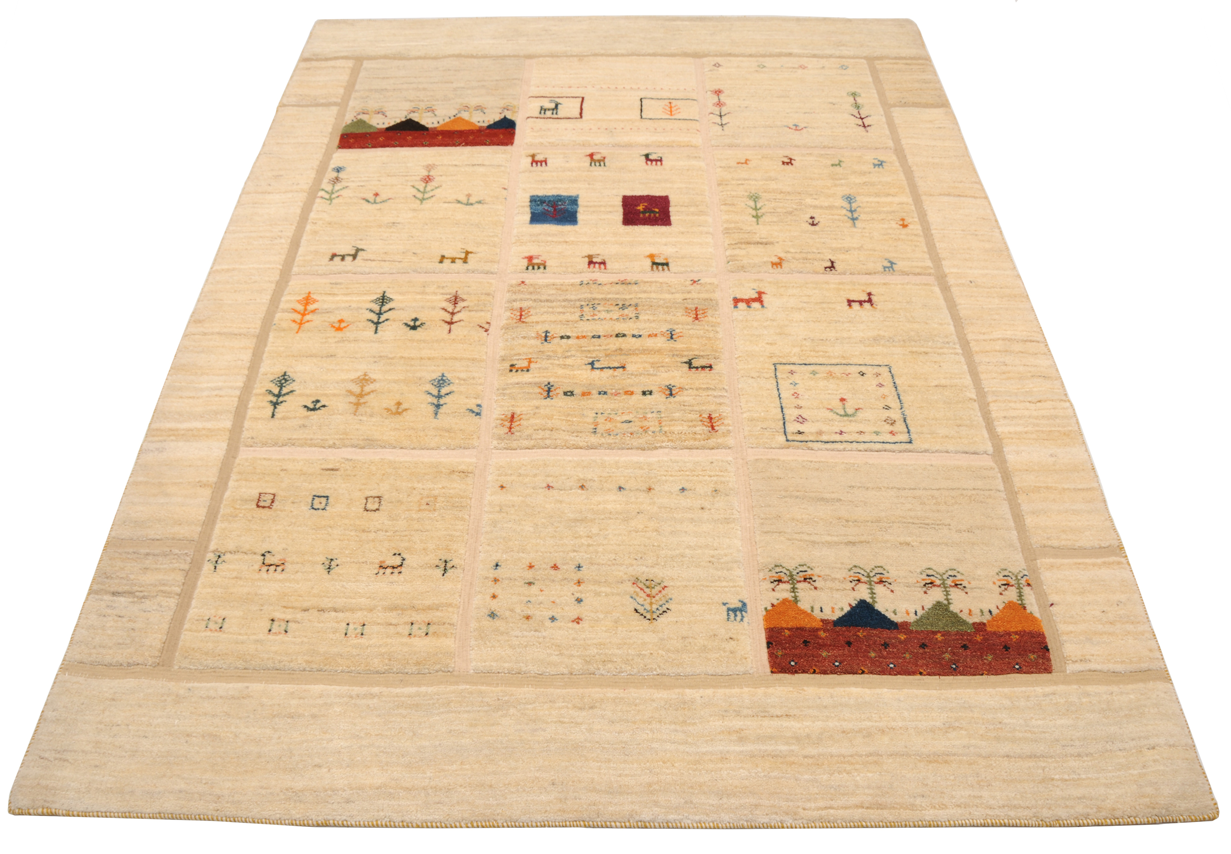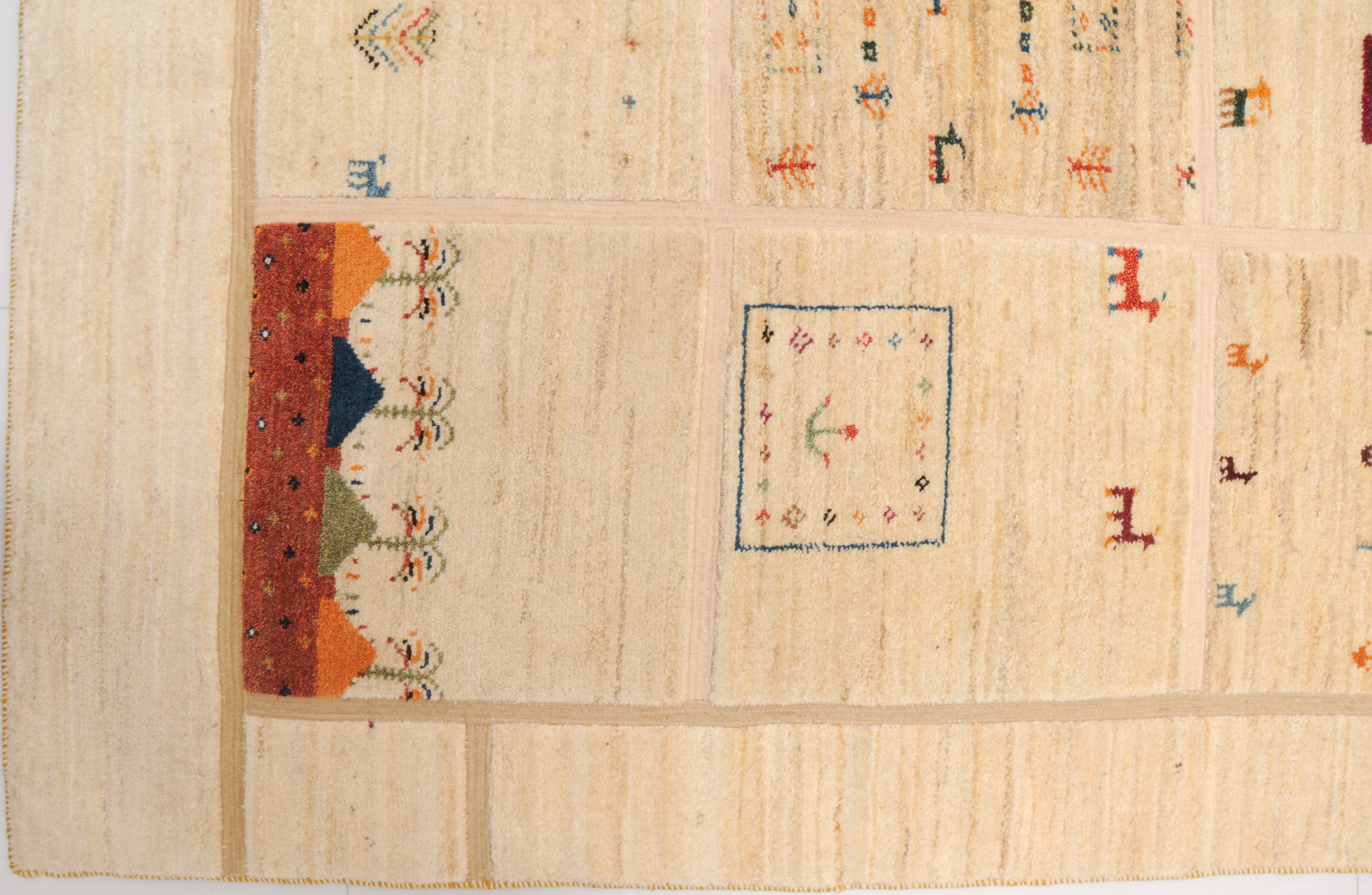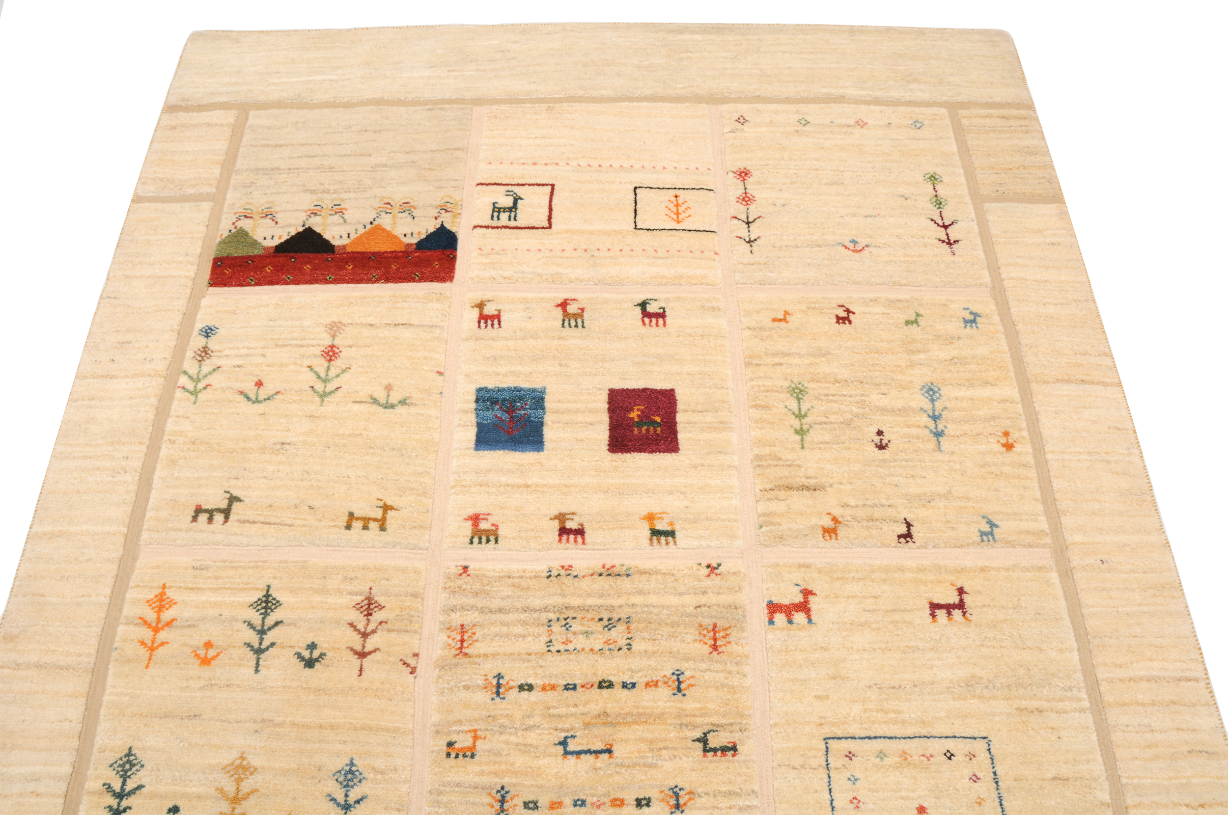 This Persian Rug is Hand Knotted with 100% Wool Pile and 100% wool Foundation. This Rug has a panel Design and its Main colors are Beige, Brown, and Bule.