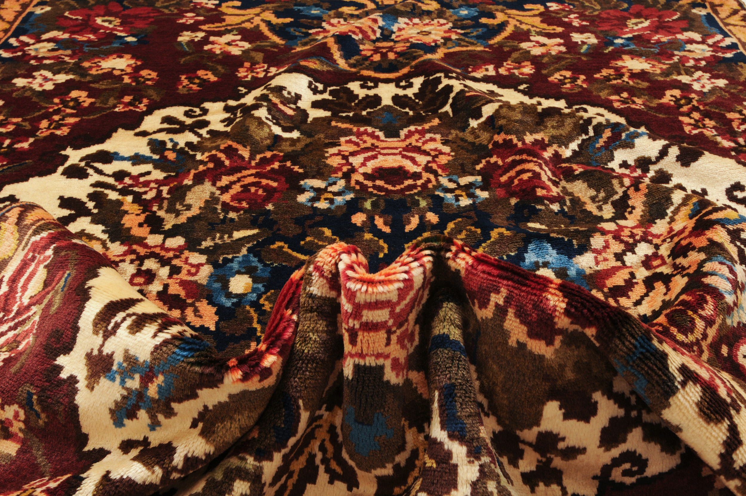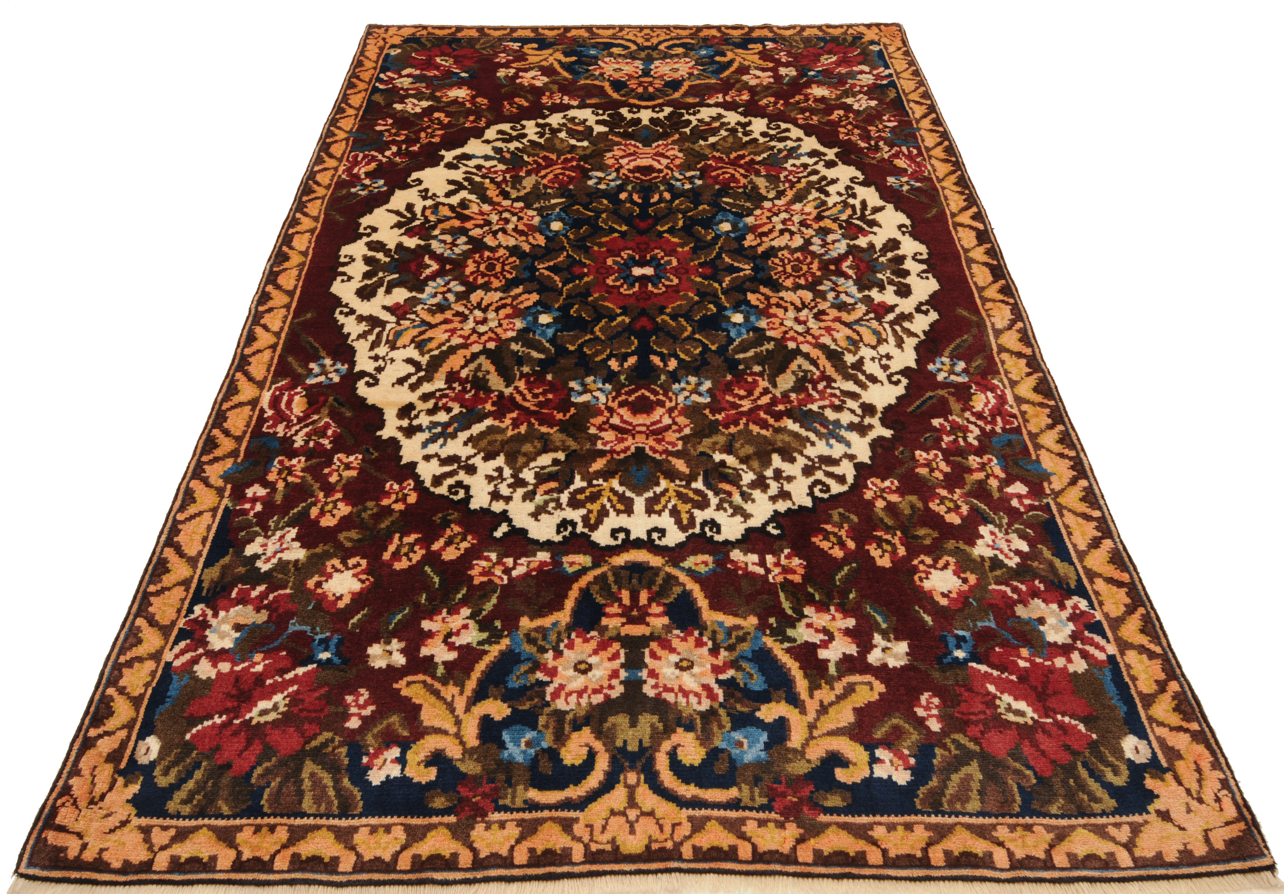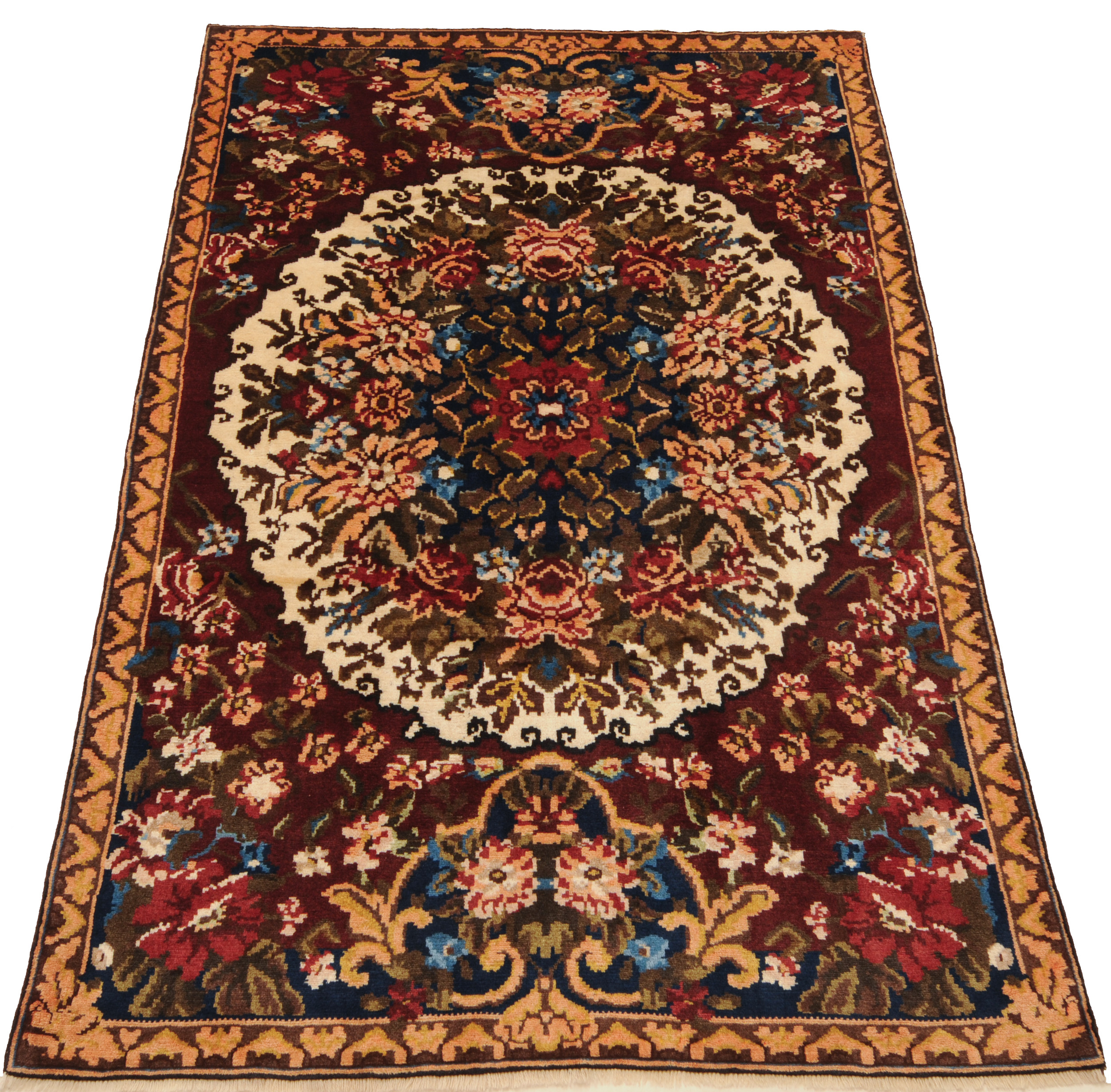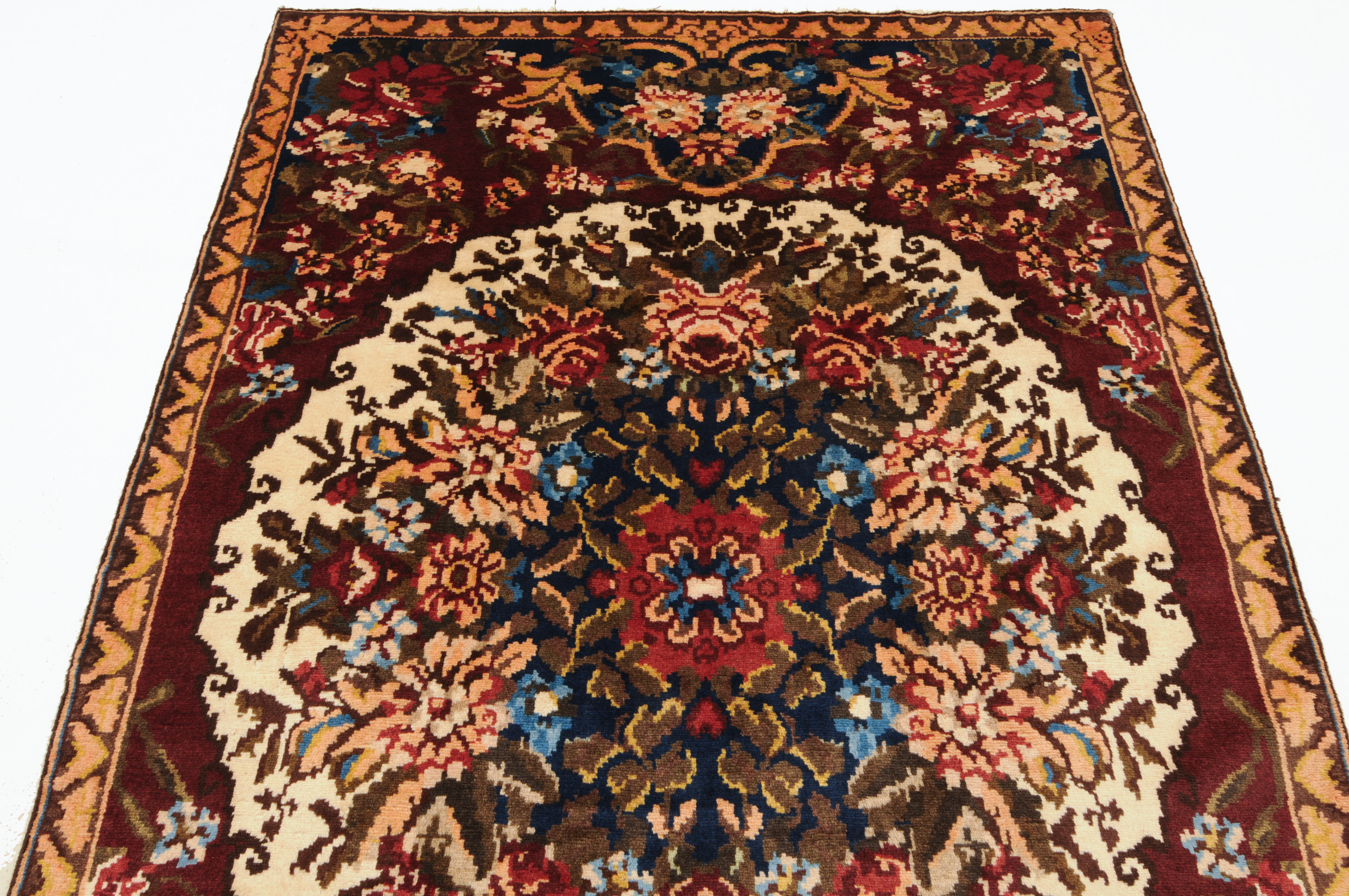 This Persian Rug is Hand Knotted with 100% Wool Pile and  Cotton Foundation. This Rug has a Floral Design and its Main colors are Blue, Brown and Beige.