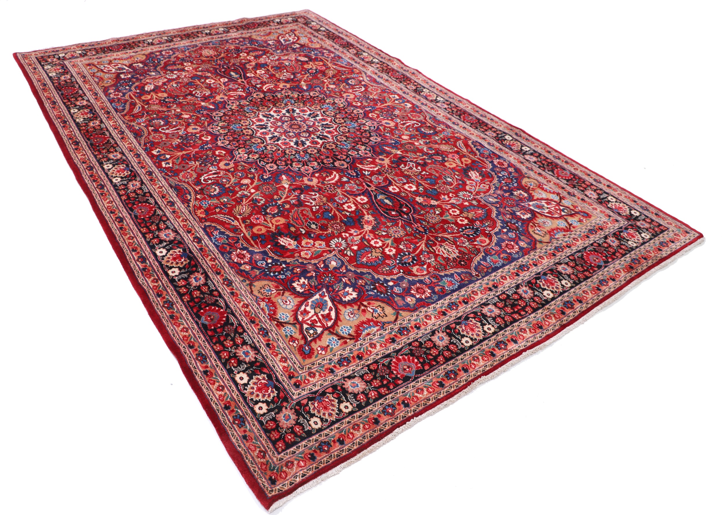 This Hand Knotted Moud Persian rug is a stunning piece measuring 6’10” x 10’4″. With an elegant design featuring red and black floral patterns, it adds a touch of sophistication to any room. Made from 100% wool with a high pile of 1/2″-5’8″, this rug offers both comfort and durability. Aged between 20-30 years, it exudes a sense of history and character. With a knot density of approximately 256 knots per square inch (KPSI), this rug showcases intricate craftsmanship. The combination of natural materials and exquisite design makes it a timeless and luxurious addition to your home.
