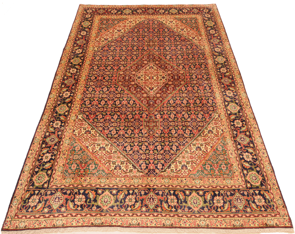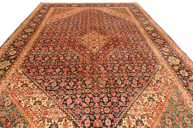 This luxurious 6’7″ x 9’10” Persian Tabriz rug is made of the finest quality materials – naturally sourced vegetable dyes, 100% wool pile, and a cotton foundation. Aged 0-10 years, the beautiful Herati design in beautiful hues of red, green, orange, and blue. Its high pile of 1/2″-5/8″ ensures exceptional comfort and durability making it a pleasure to walk on or to simply enjoy its beauty.