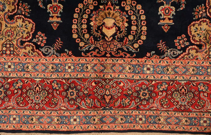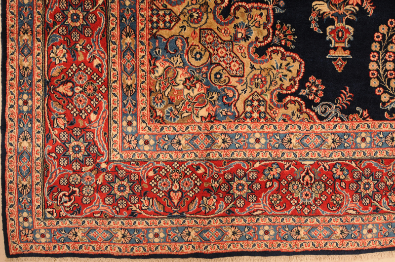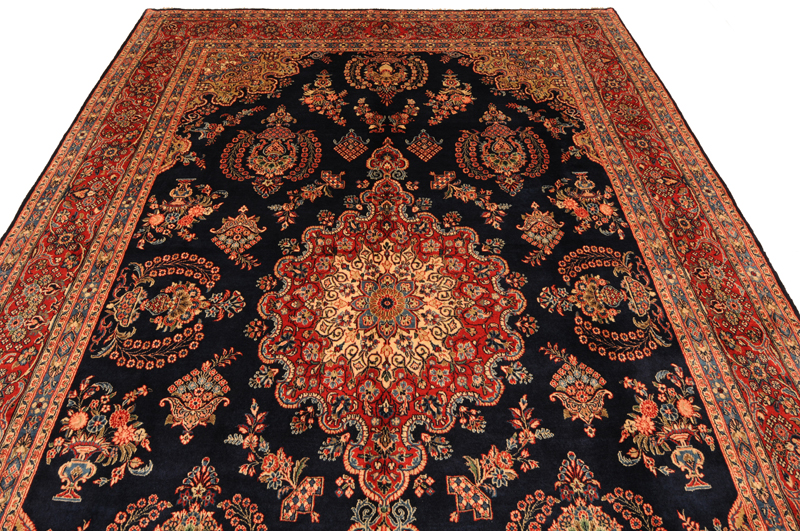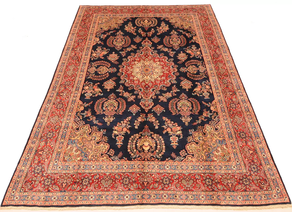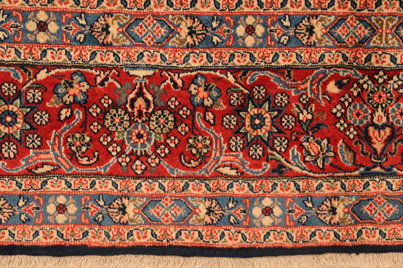 This Persian Rug is Hand Knotted with 100% Wool Pile and Cotton Foundation. This Rug has a Floral Design and its Main color is Blue,Red, Peach and Green.