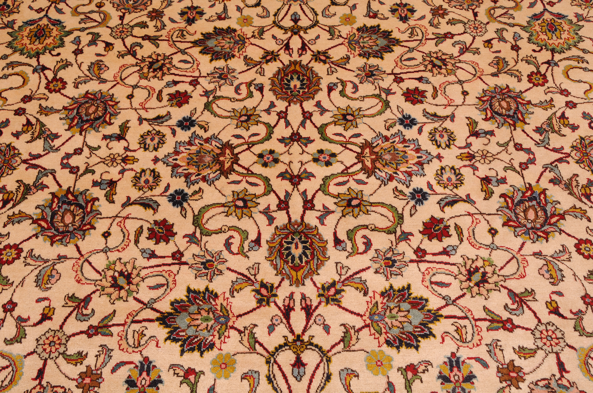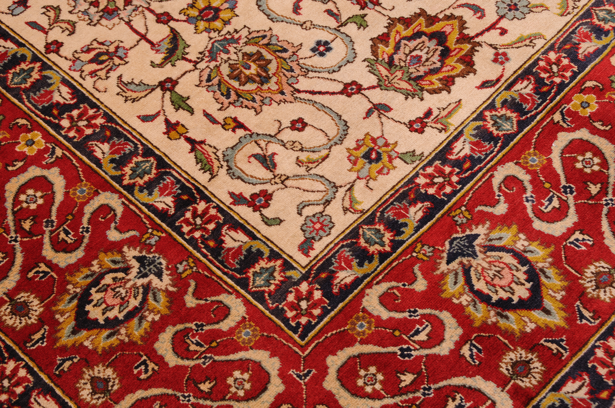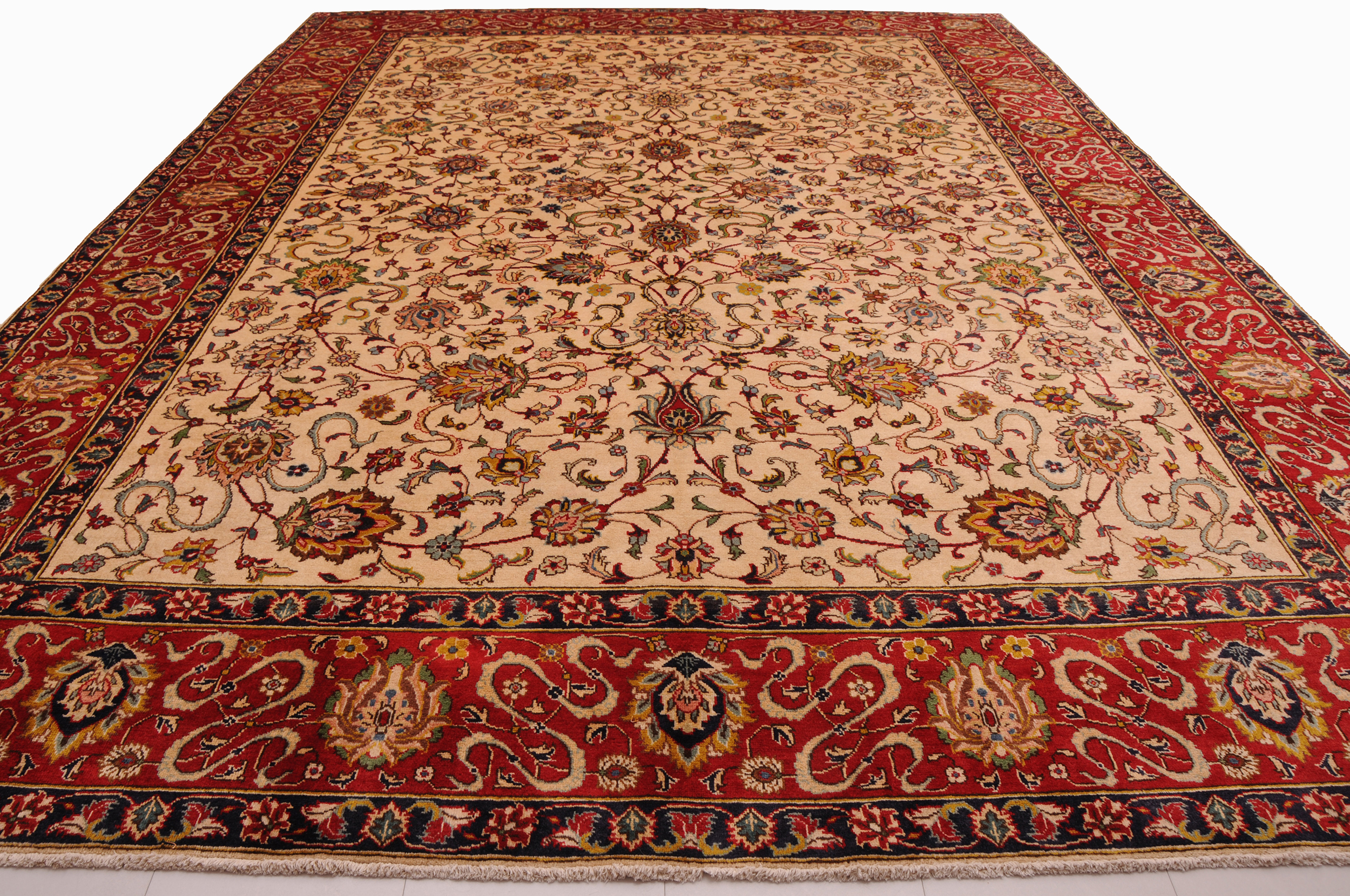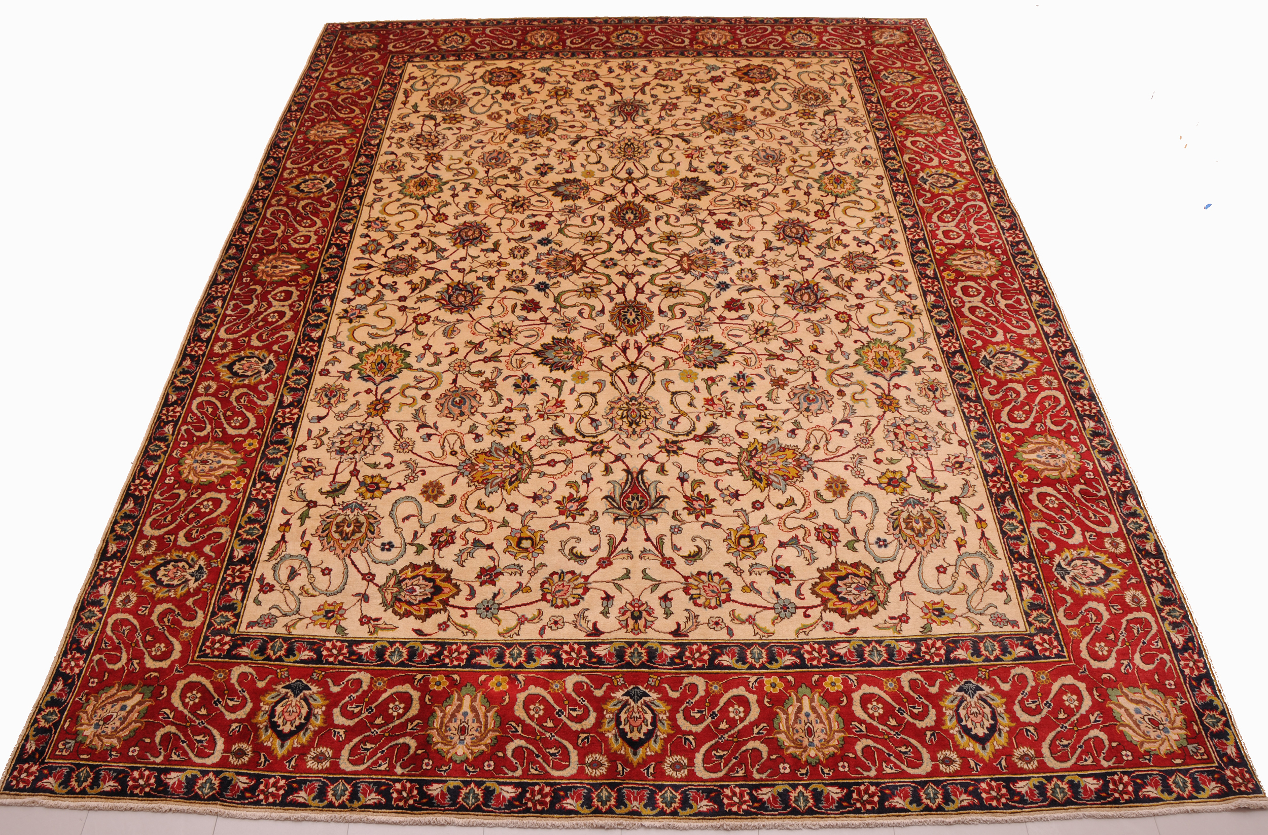 Adding a level of comfort and visual texture to your space is the raised pile of about 1/2″-5/8″. This beautiful Tabriz rug reflects the highest level of craftsmanship.