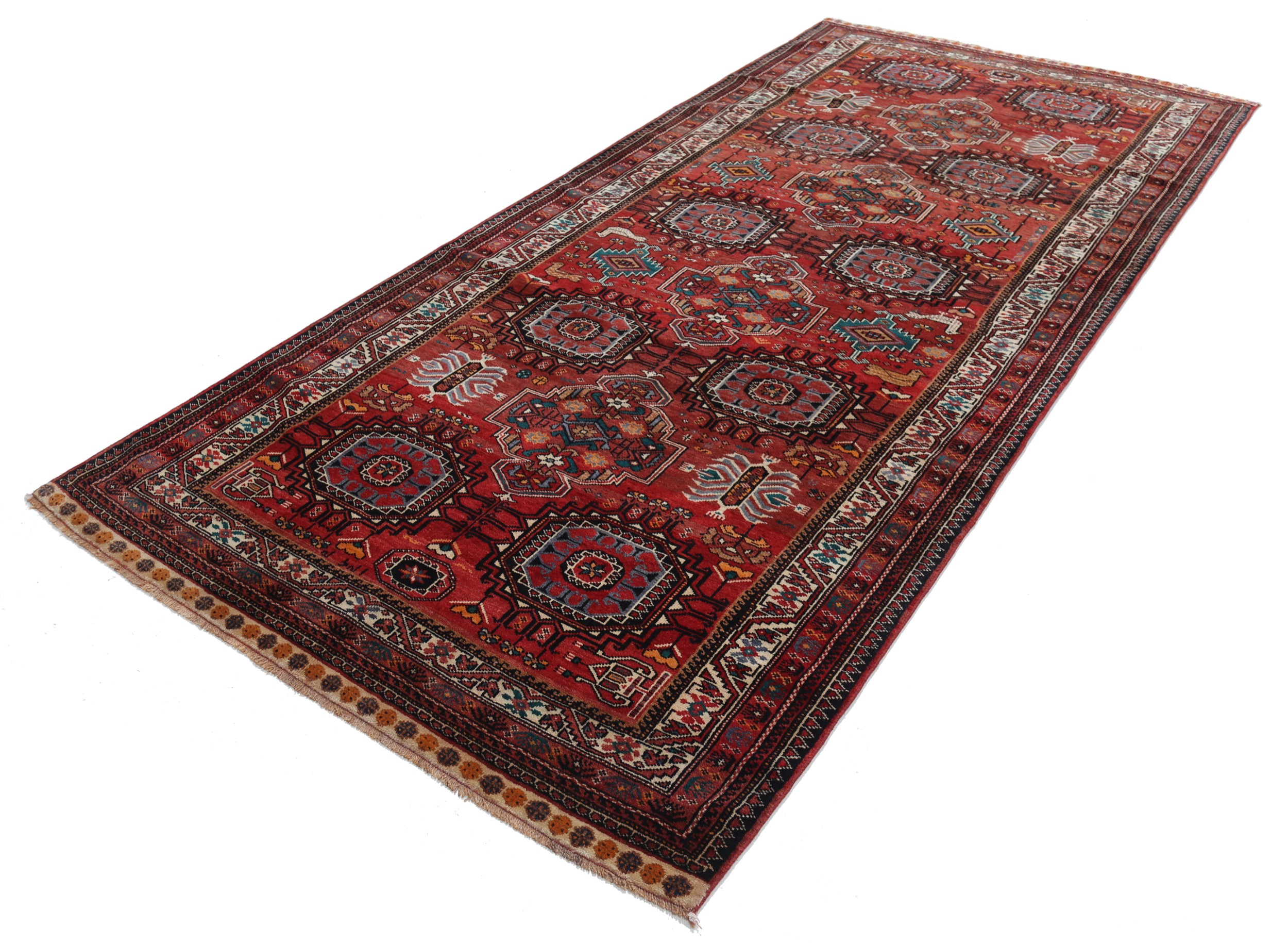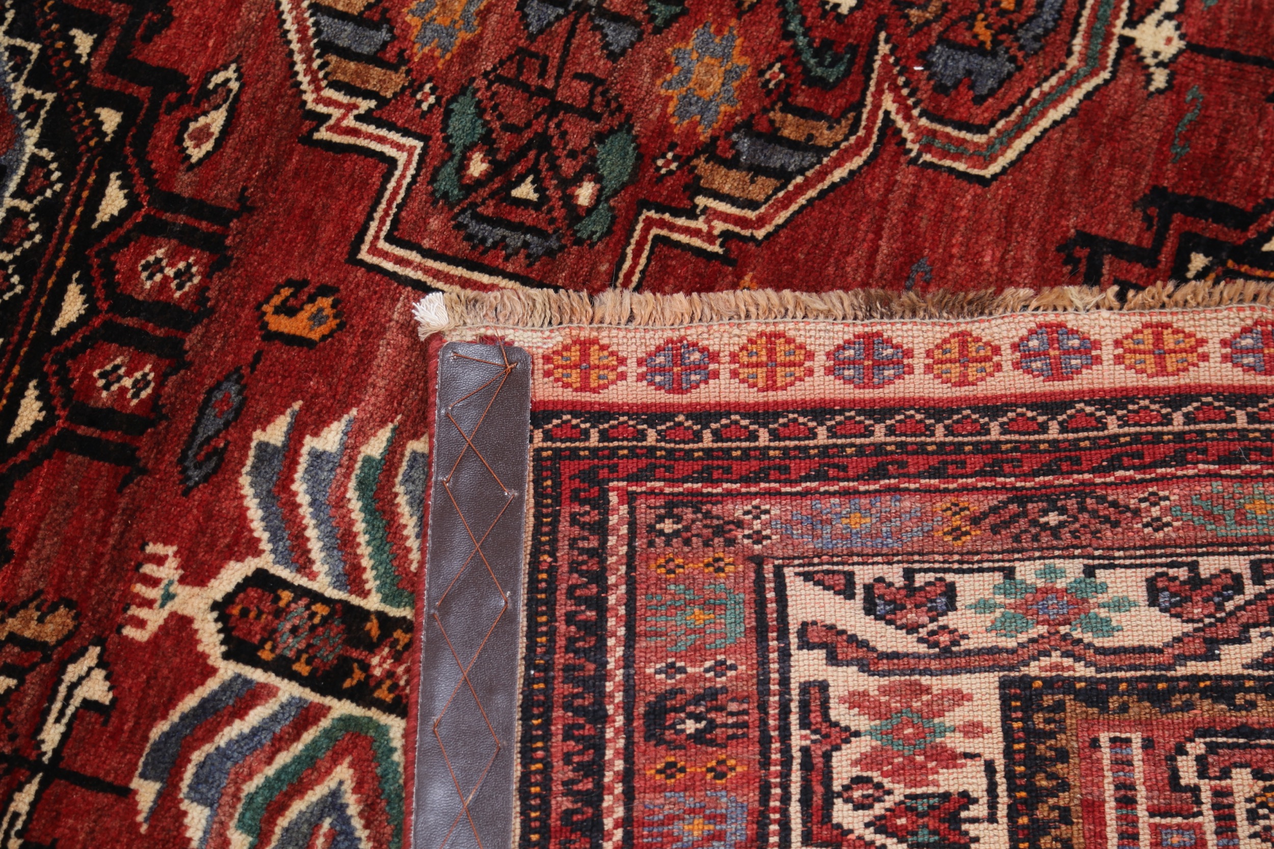 This Quchan Kurdi Persian rug, measuring 5′ x 10’7″, features a beautiful combination of beige, brown, blue, and green colors. Made from 100% wool with a medium pile height of 1/3″-3/8″, it showcases an aged design and has an approximate knot density of 196 KPSI.