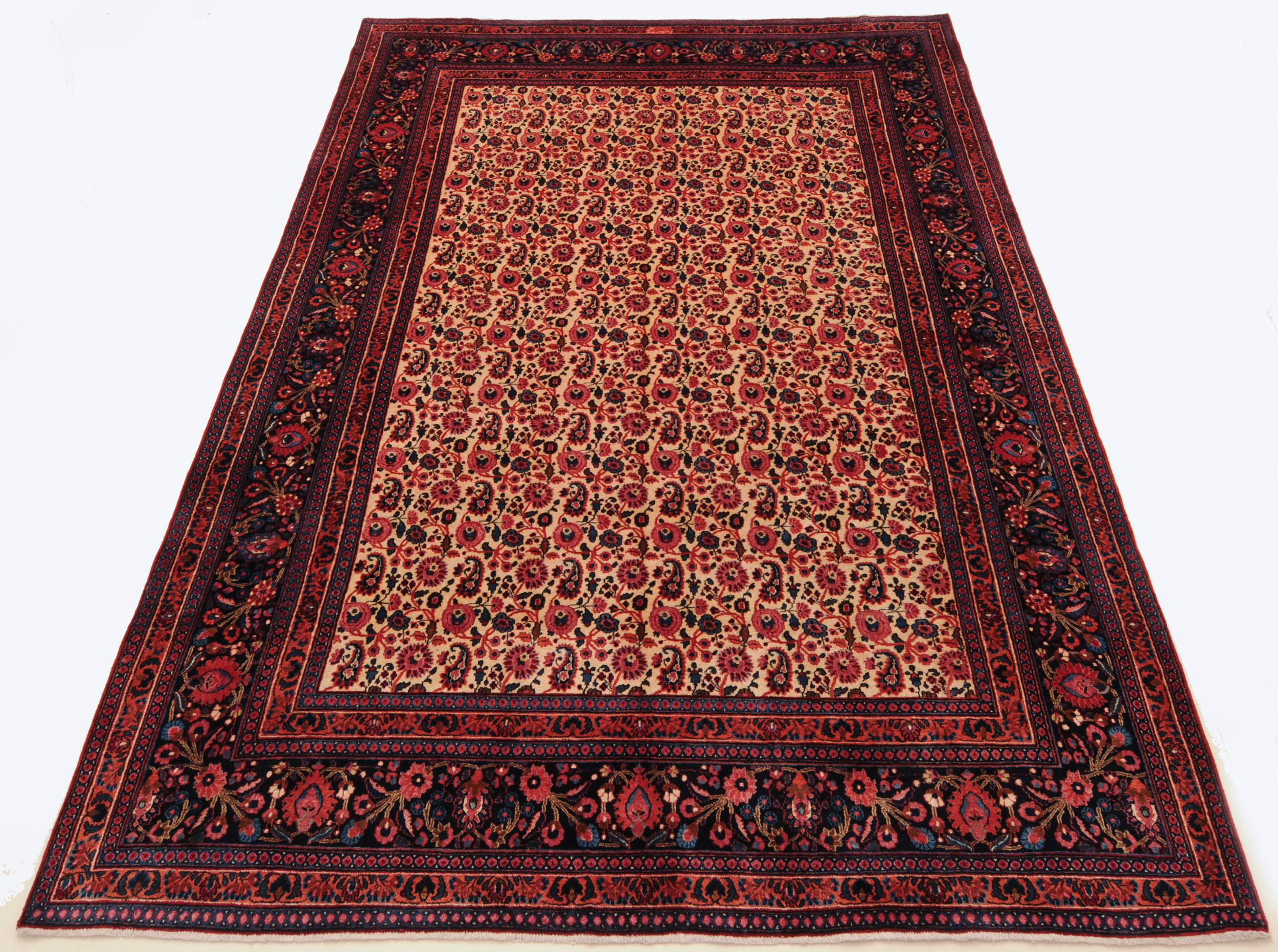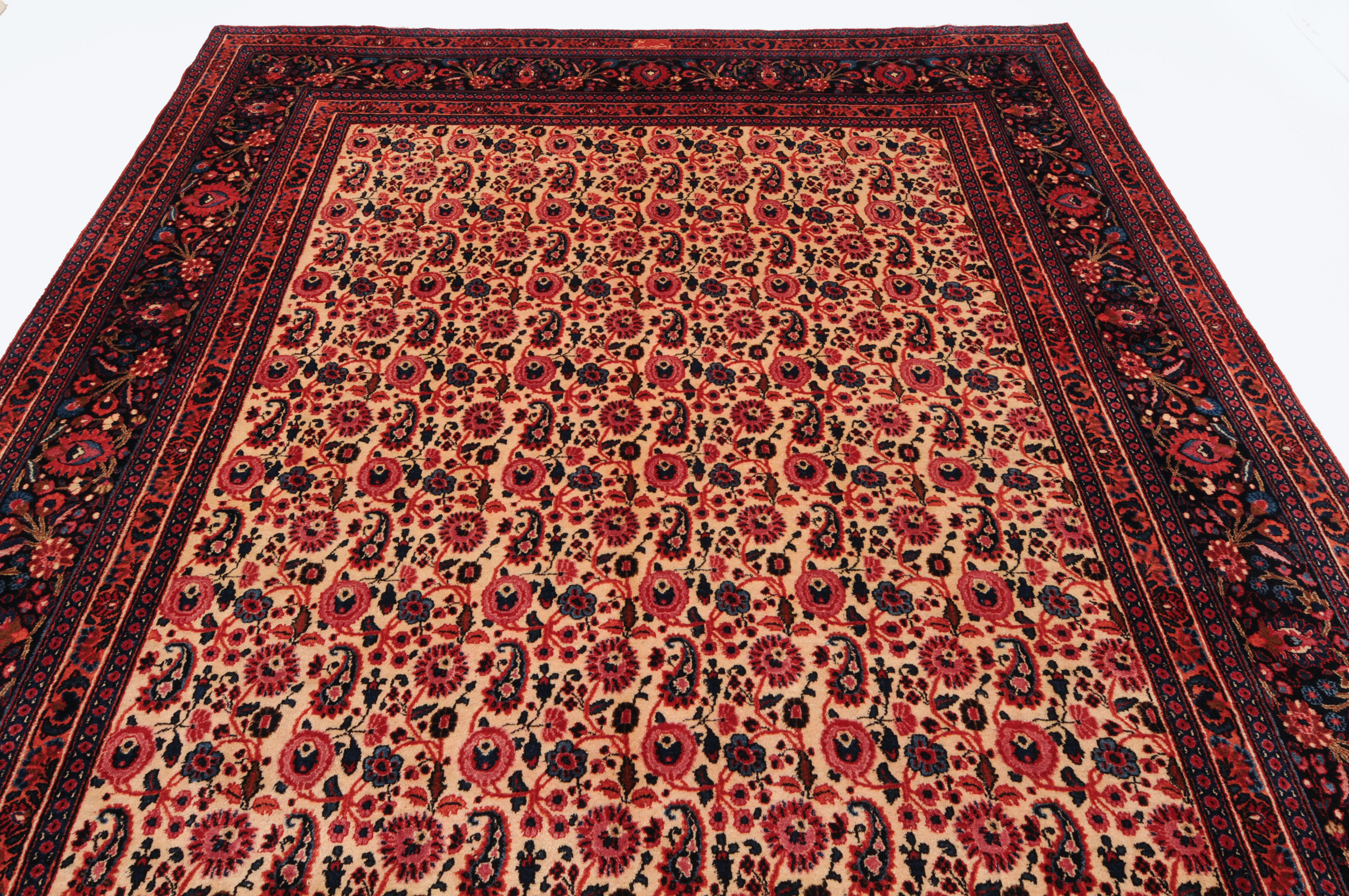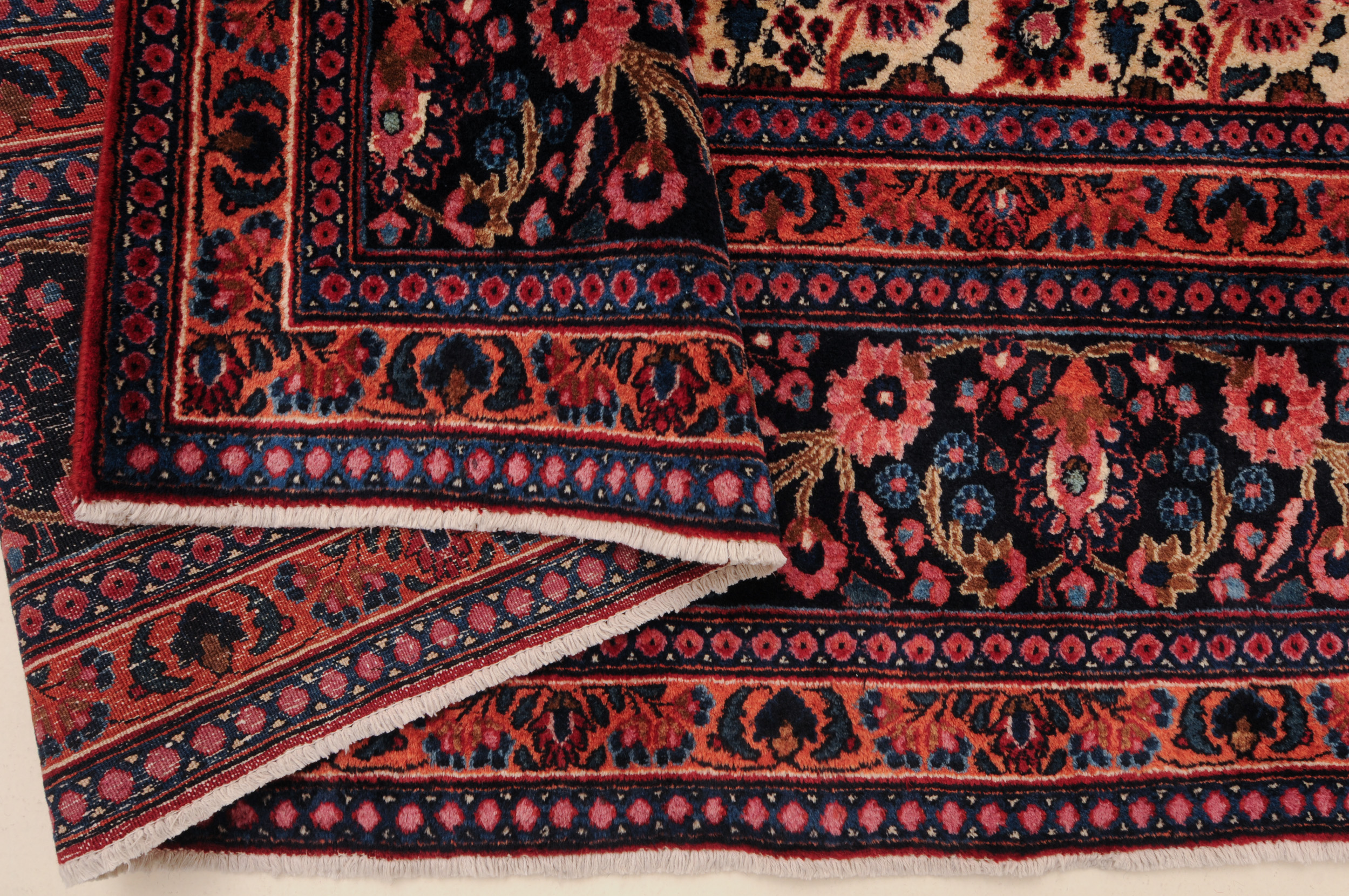 This Persian Rug is Hand Knotted with 100% Wool Pile and Cotton Foundation. This Rug has a Floral Design and its Main colors are Blue,Peach, Beige